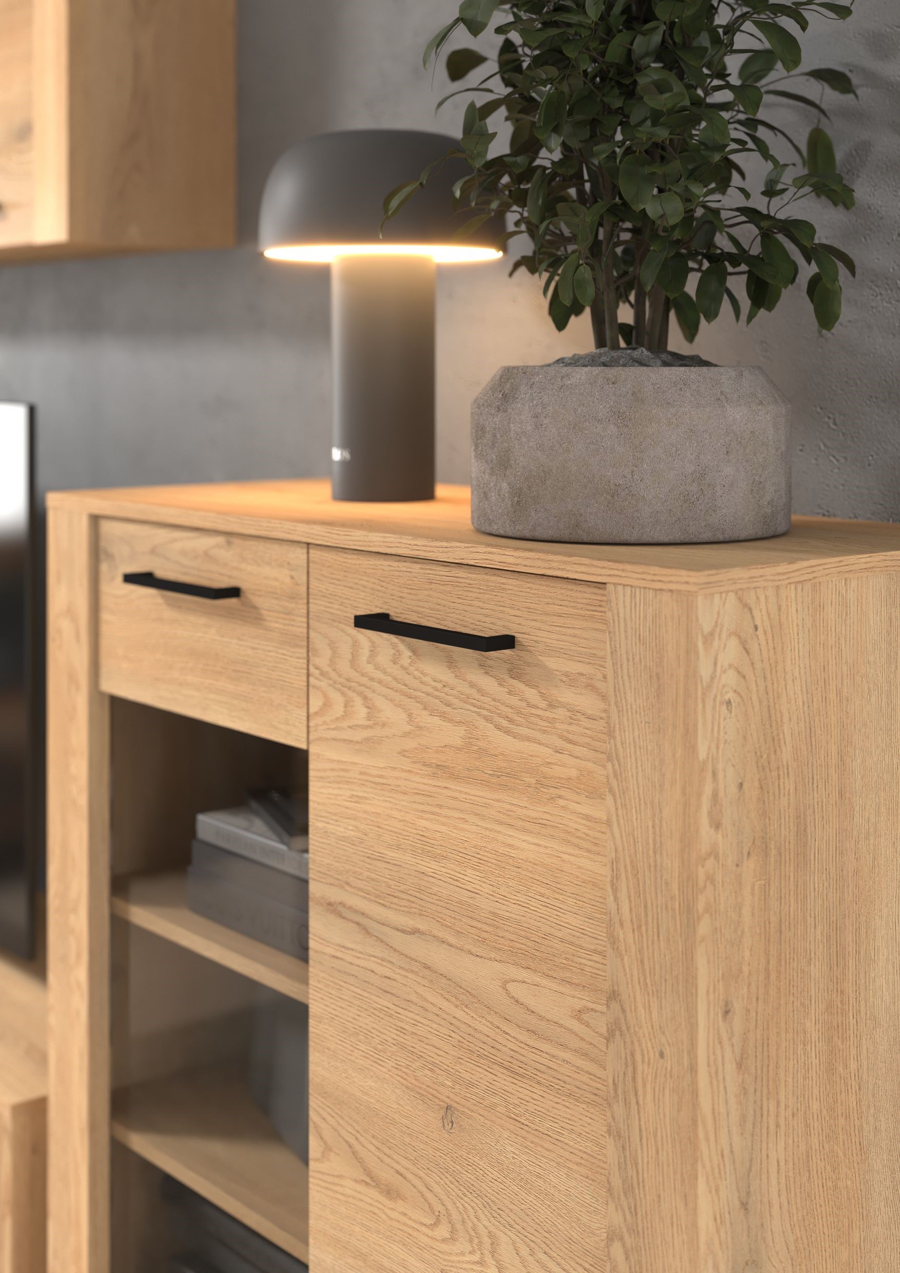 DELIS 03 didelė komoda su durelėmis svetainei, kremonos ąžuolas