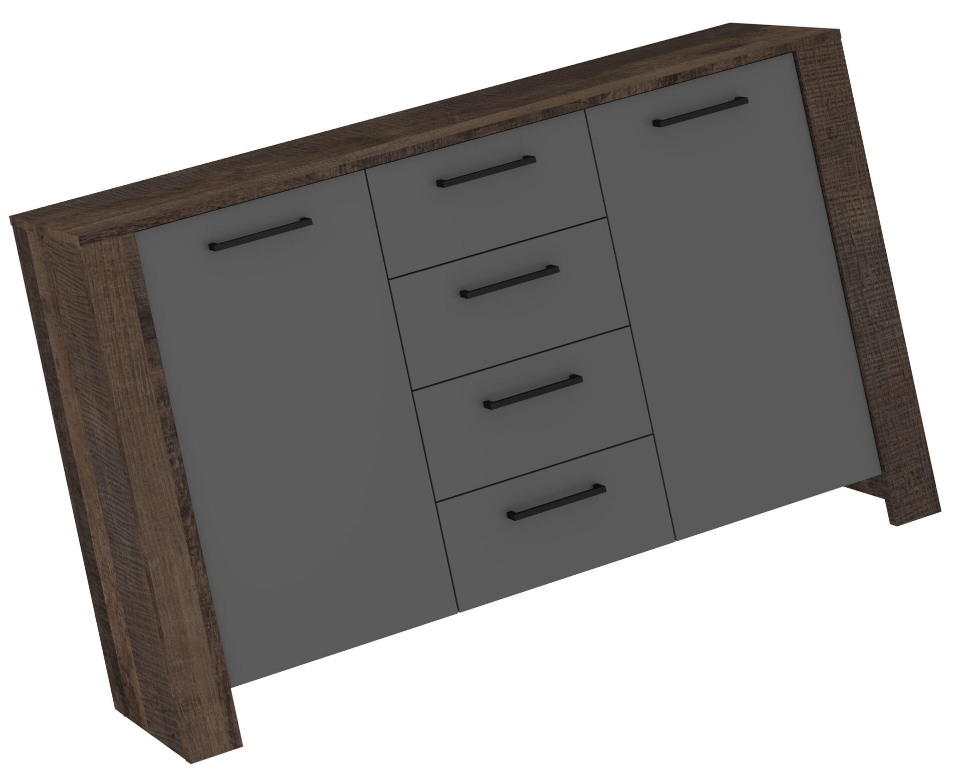 DELIS 03 didelė komoda su durelėmis svetainei, ąžuolo ir grafito spalvos