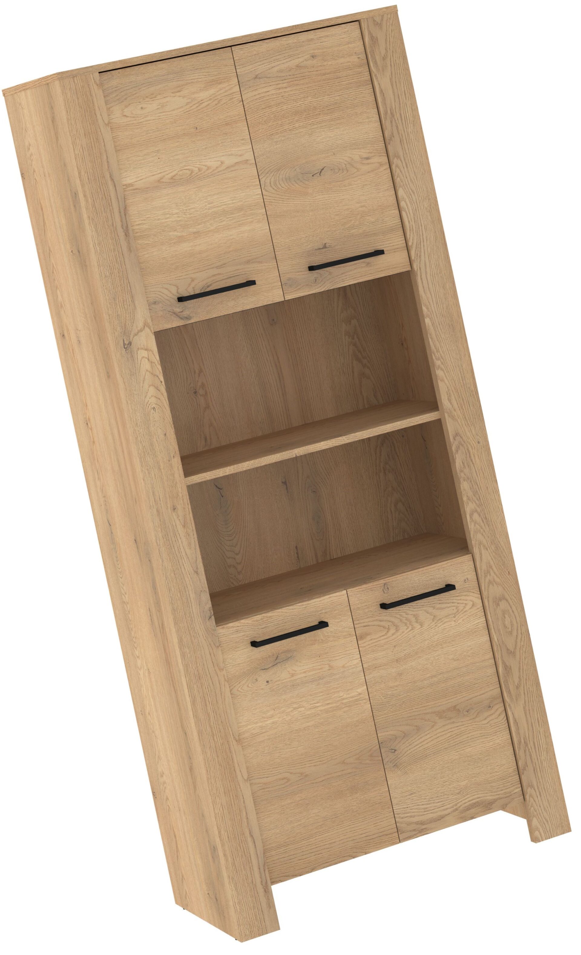 DELIS 09 baldai, aukšta knygų lentyna su durelėmis ir lentynomis, kremonos ąžuolas