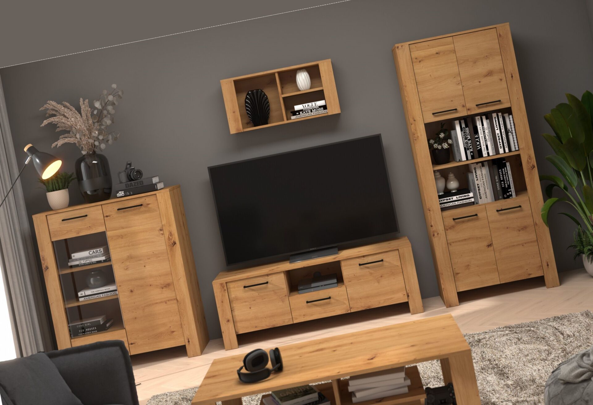 DELIS baldai #1 vitrinos komplektas, TV spintelė, lentyna, ąžuolas