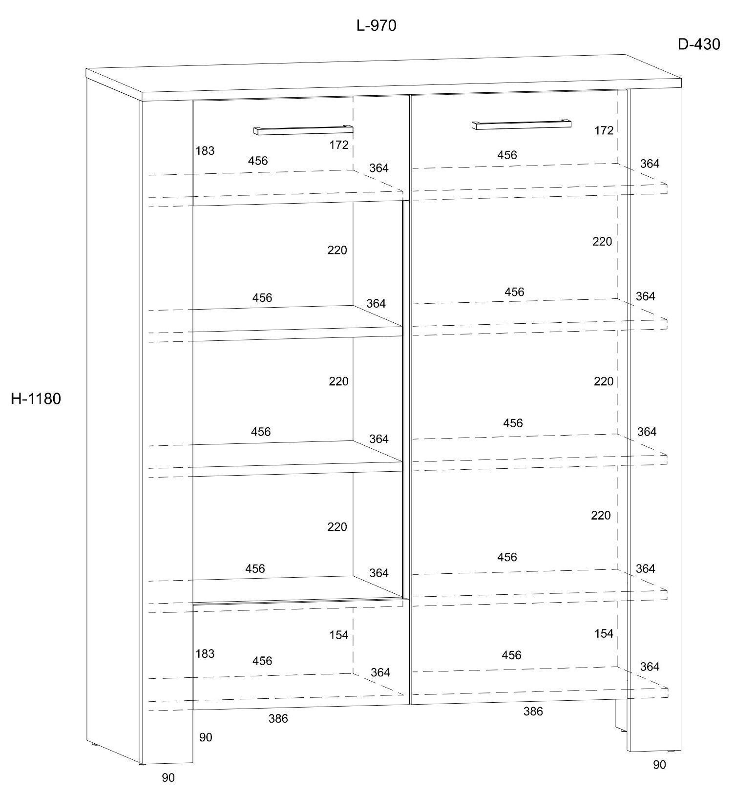 DELIS komplektas 1. 16 mm ir 25 mm plokštė, ABS kraštas, švelnaus uždarymo, PILNAI ATIDARYTOS bėgelės. Komplektą sudaro: DELIS 14 baldai, vitrina 97/118/43 – 53 kg – 3 vnt., DELIS 10 baldai, televizoriaus spintelė 140/49/43 – 32 kg – 1 vnt., DELIS 09 baldai, lentyna 80/186/43 – 46 kg – 2 vnt., DELIS 07 baldai, lentyna 80/39/25 – 10 kg – 1 vnt. Spalva: dirbtinio ąžuolo.