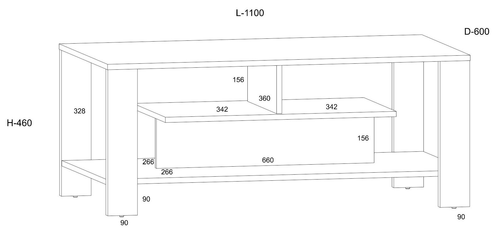 DELIS baldai #2 lentyna, TV staliukas, lentyna, kavos staliukas, Cremona ąžuolas, grm