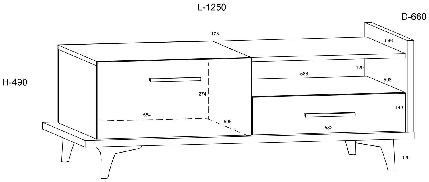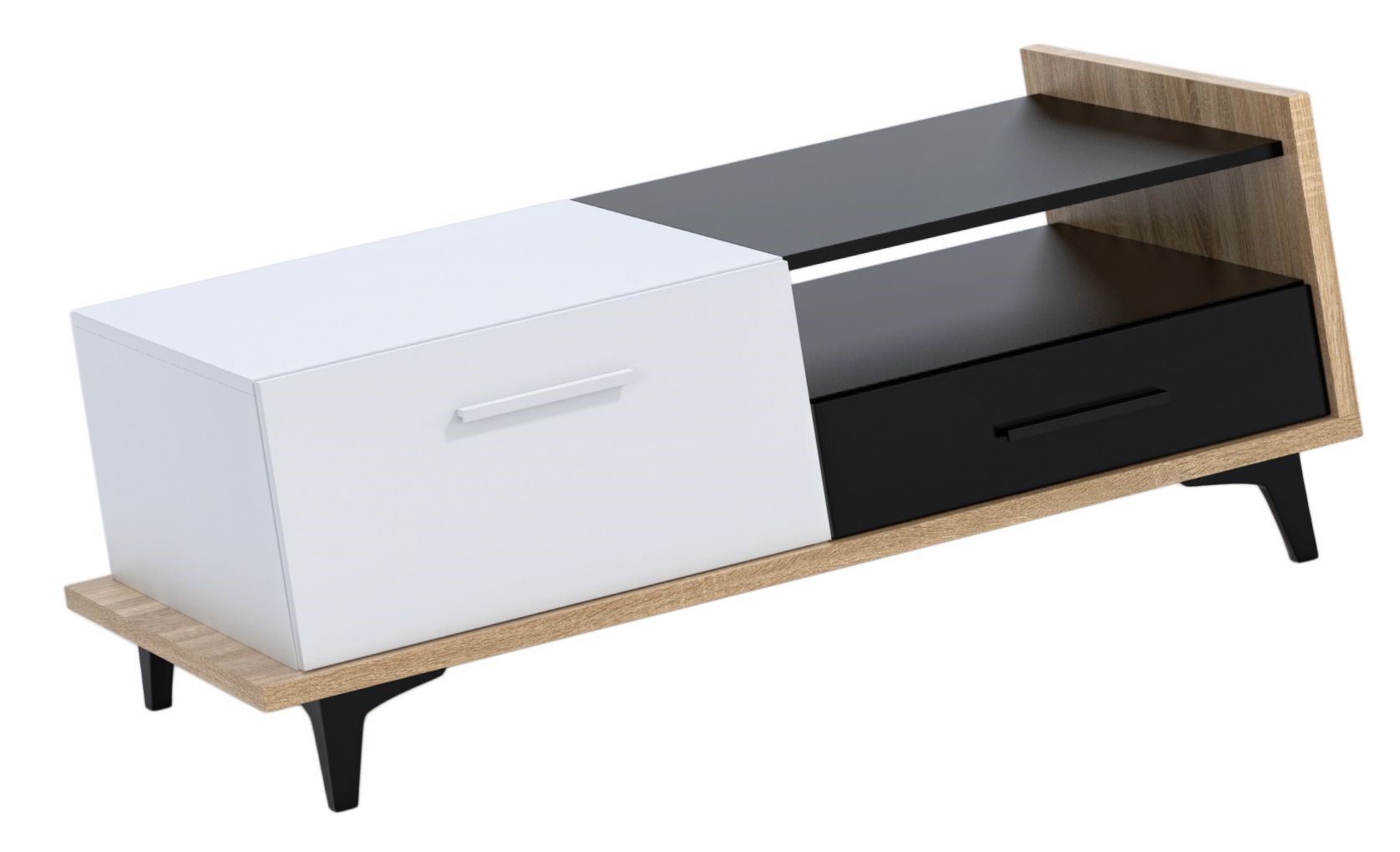 DOX 03 kavos staliukas svetainei, Sonoma ąžuolo spalvos, balta, juoda