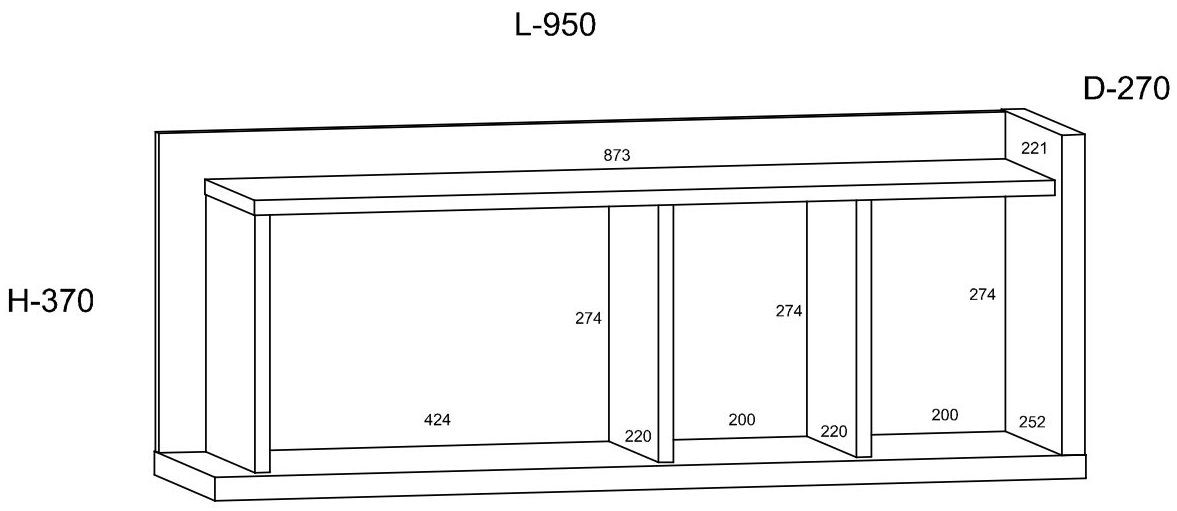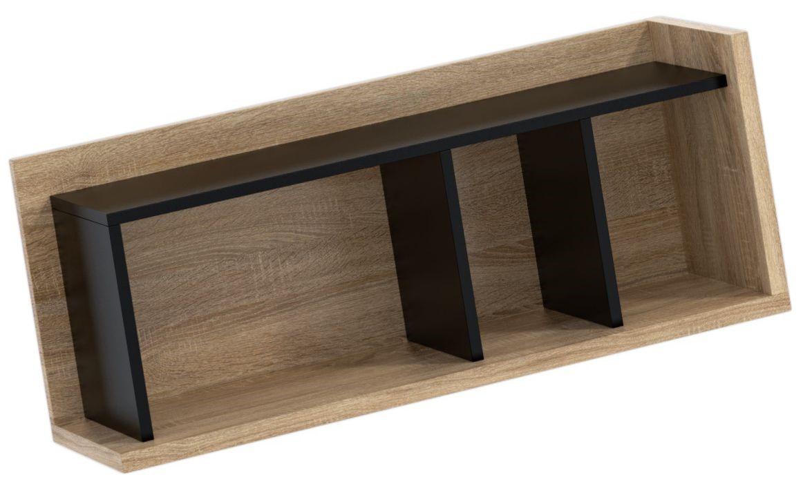 DOX 04 baldai, prie sienos tvirtinama knygų lentyna, Sonoma ąžuolas, juoda
