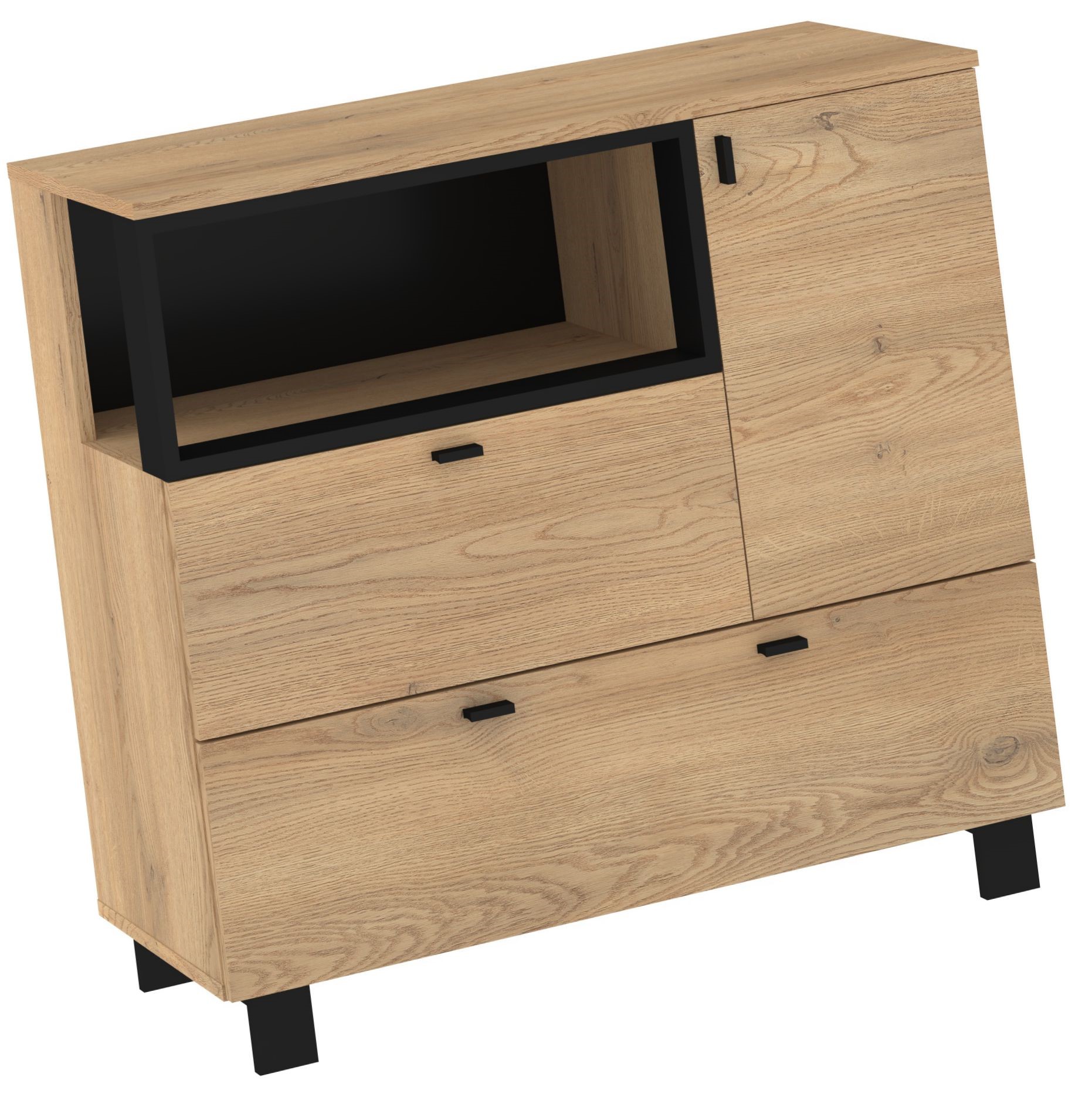 GAVES 01 baldų komoda su kojelėmis svetainei, kremonos ąžuolas, juoda