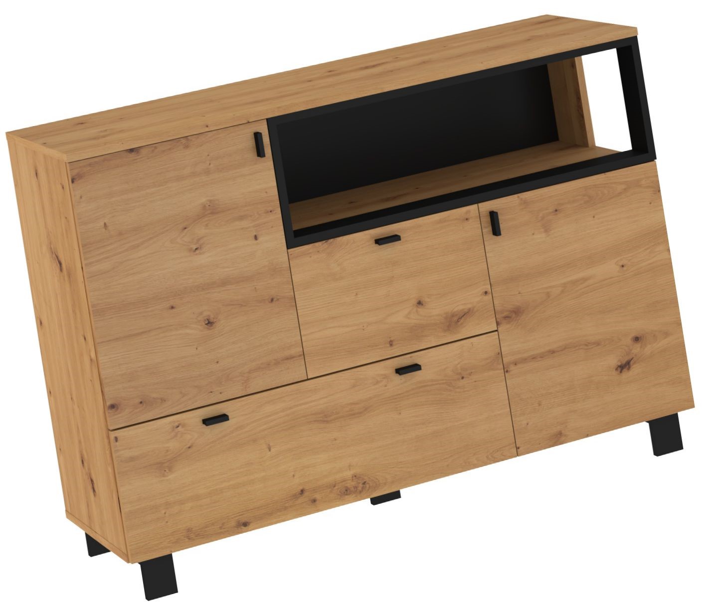 Plotis [cm]: 120 Aukštis [cm]: 85 Gylis [cm]: 42 Svoris [kg]: 50 Spalvos: ąžuolas, juoda