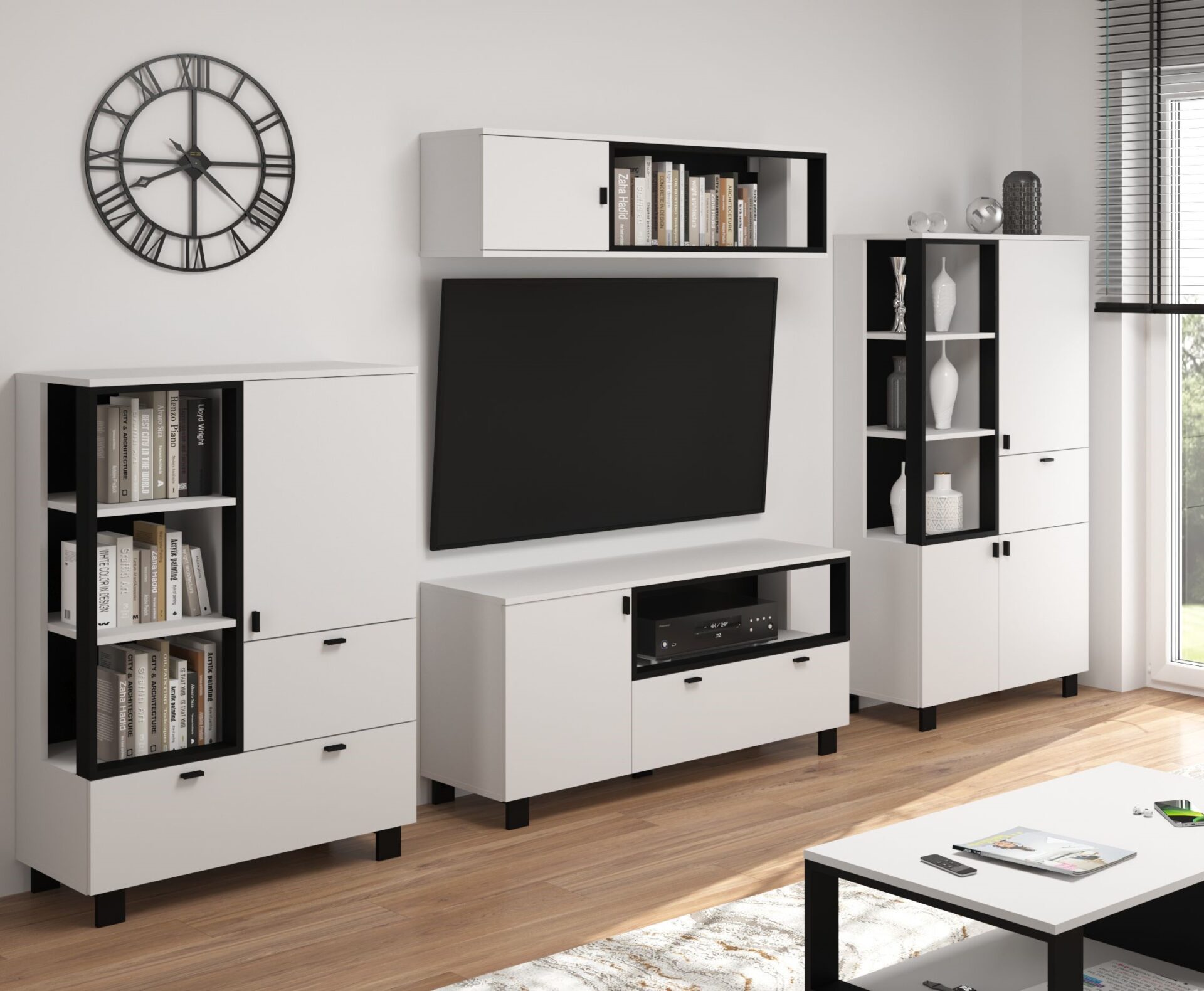 Komplektą sudaro: GAVES 06 Lentyna 80/119/42 – 46 kg – 2 vnt. GAVES 09 Lentyna 80/154/42 – 52 kg – 2 vnt. GAVES 12 TV staliukas 120/60/42 – 33 kg – 1 vnt. GAVES 15 Pakabinama lentyna 120/33/32 – 15 kg – 1 vnt. Spalva: balta/juoda