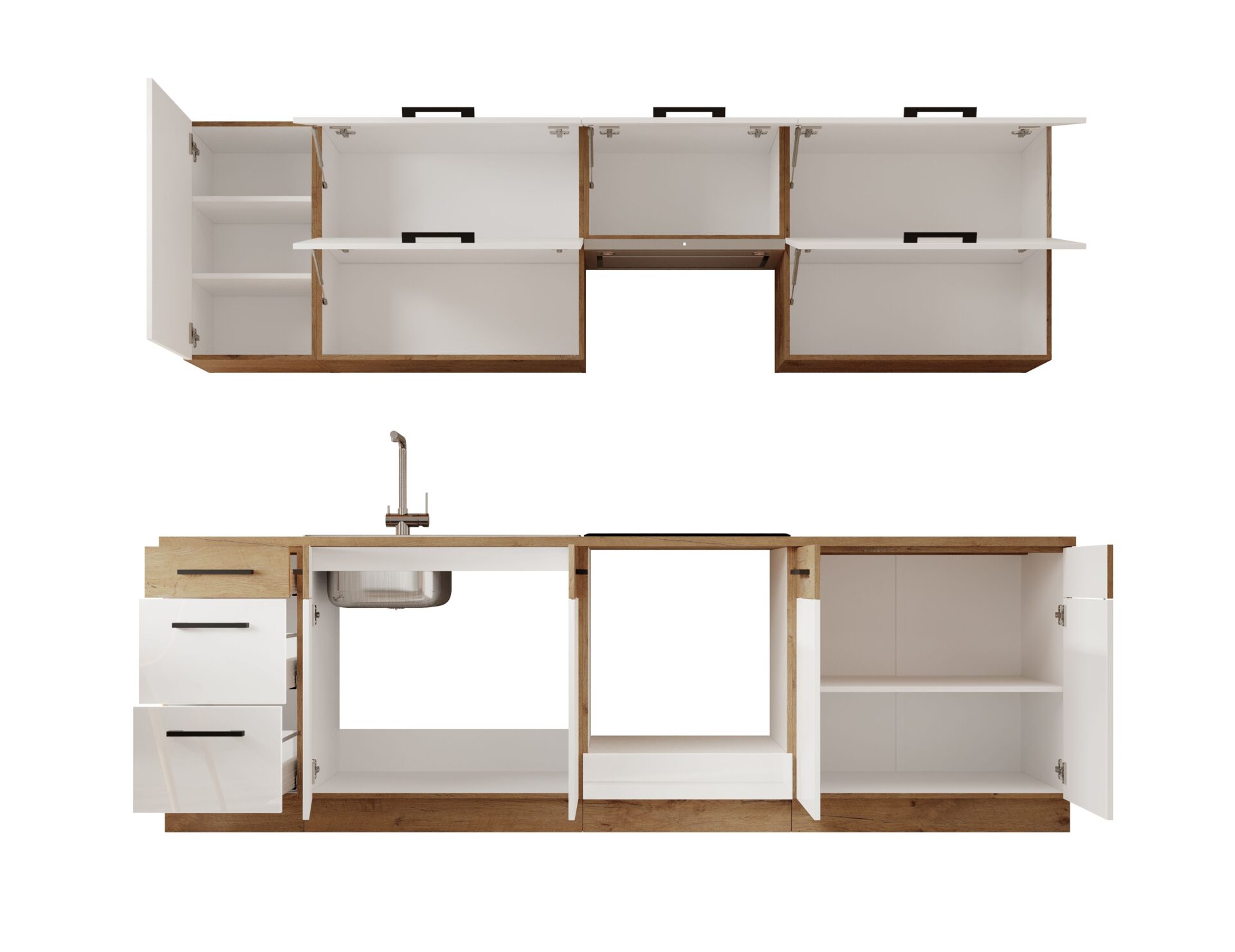 VIKA 260 Virtuvės baldai, blizgi balta/Lancelot ąžuolas, ADRK