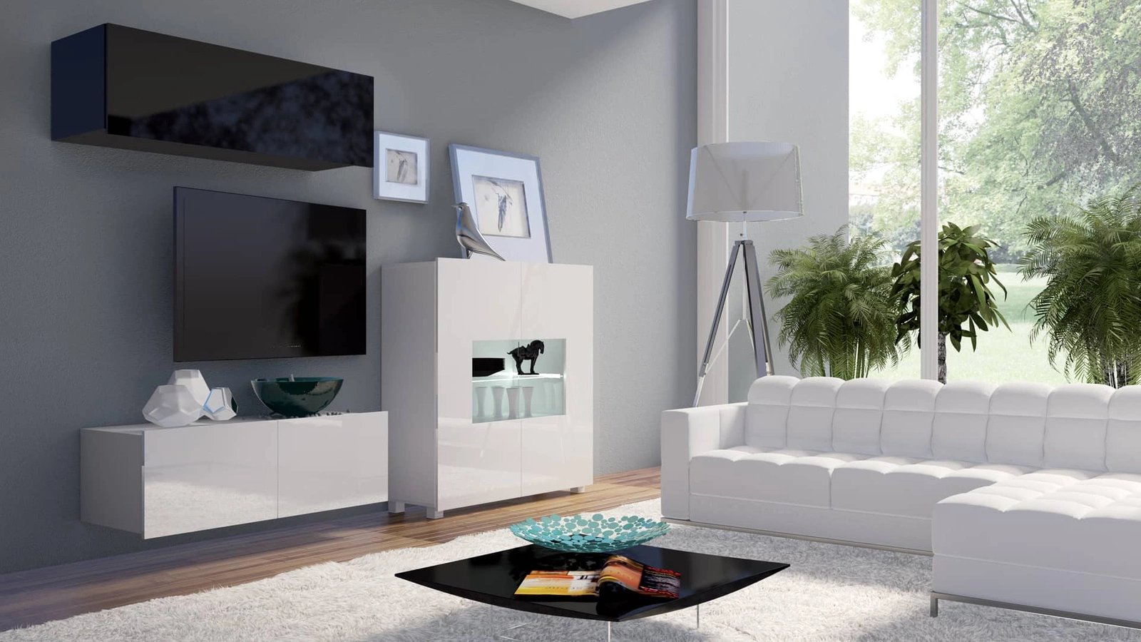 „Apulia IX“ sieninė spintelė, baltai blizgi / juodai blizgi, išskirtinai stilinga sieninė spintelė, paprastų formų, tinkanti bet kokiam interjerui