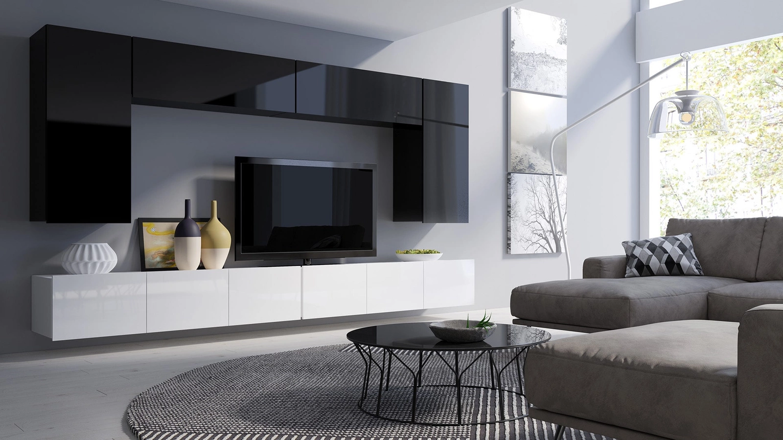 „Apulia XIII“ sieninė spintelė, blizgiai balta / blizgiai juoda, išskirtinai stilinga sieninė spintelė, paprastų formų, tinkanti bet kokiam interjerui