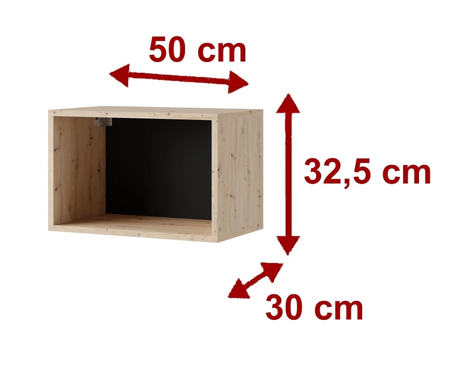 „Apulia XXXI“ sieninė spintelė, juodai blizgi / dirbtinio ąžuolo, išskirtinai stilinga sieninė spintelė, paprastų formų, tinkanti bet kokiam interjerui