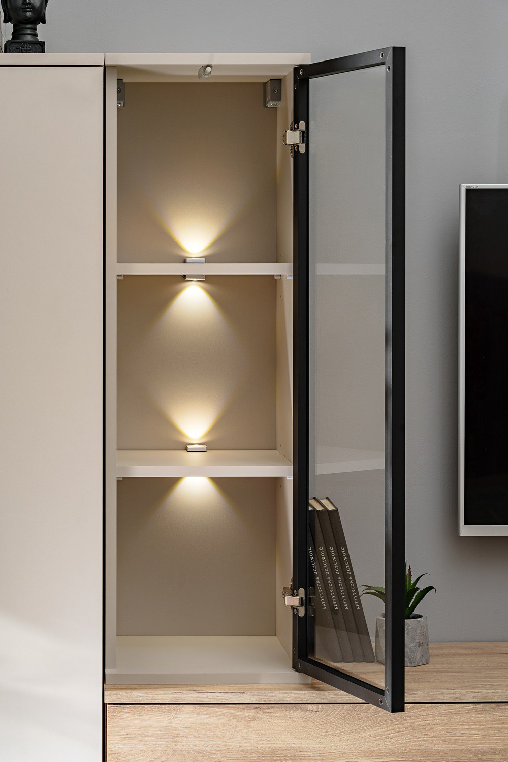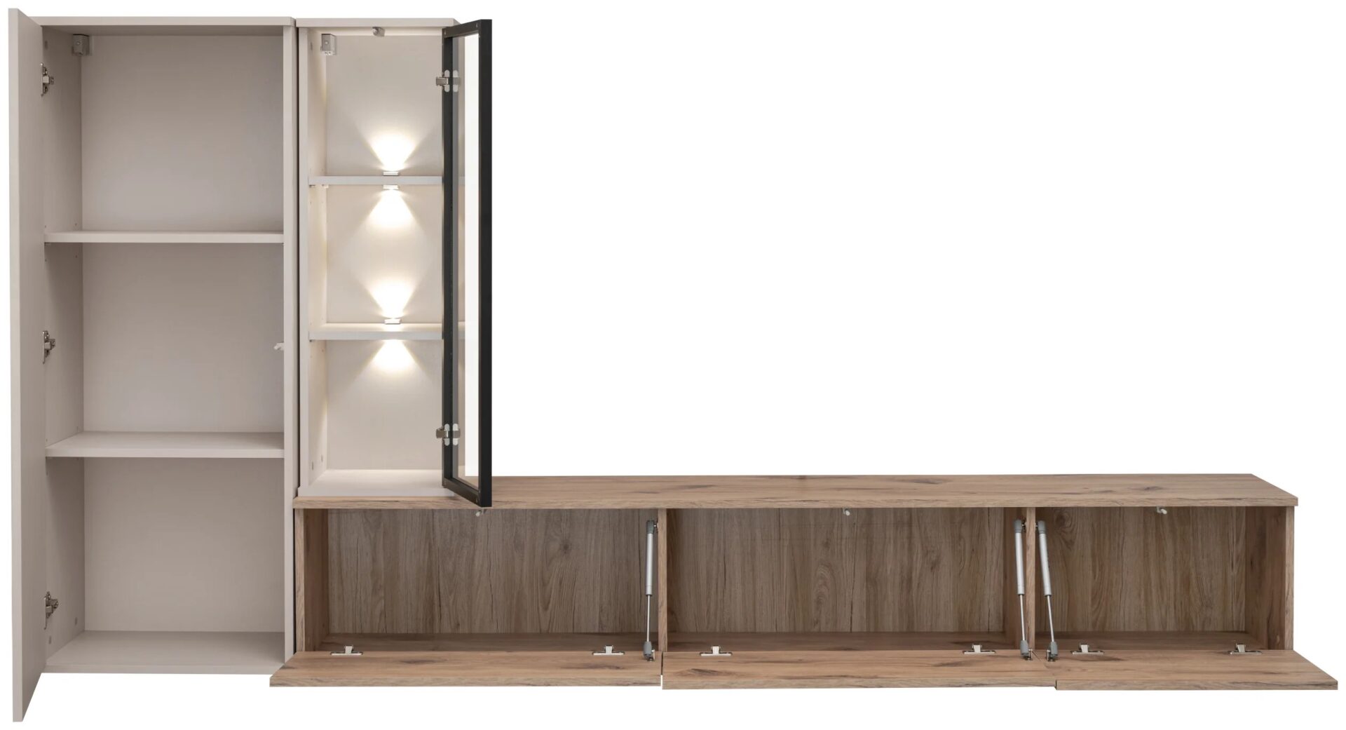 Medžiaga: Korpusas: Laminuota baldų plokštė; Priekis: Laminuota baldų plokštė, stiklas