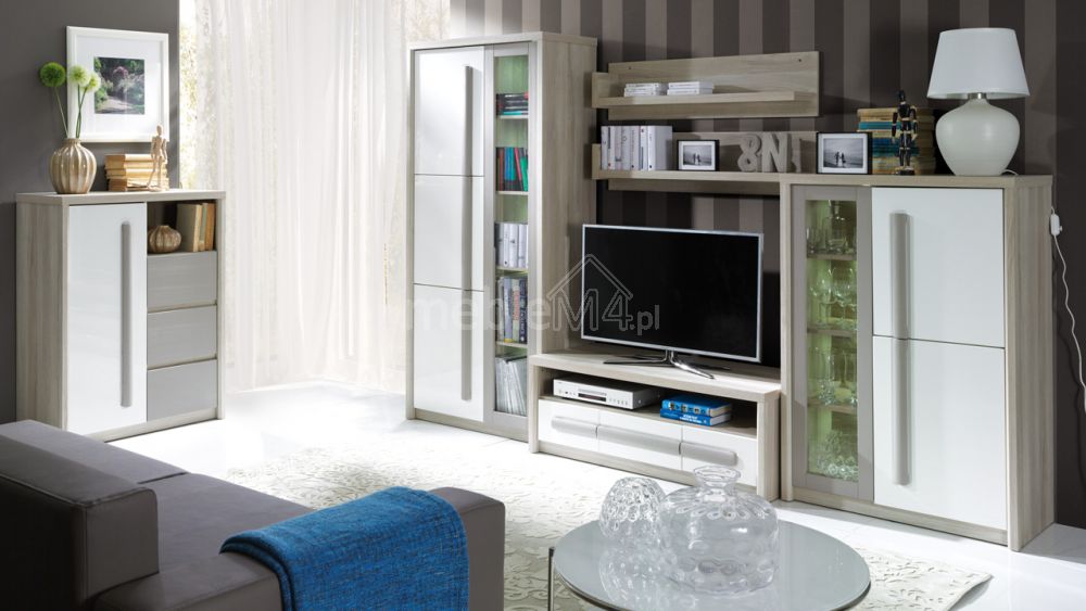 „Roma“ sieninių spintelių komplektas A – modernus sprendimas svetainei – apima: