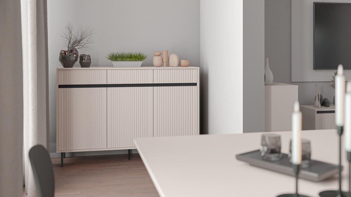 „Osaka“ baldų kolekcija – tai harmoningas modernių formų ir rafinuotų detalių derinys. Minimalistines atskirų baldų linijas pagyvina įmantrus frezavimas, o šiltas baldų spalvas gražiai paryškina subtilus vitrinų LED apšvietimas. Kolekciją sudaro 11 gaminių.
