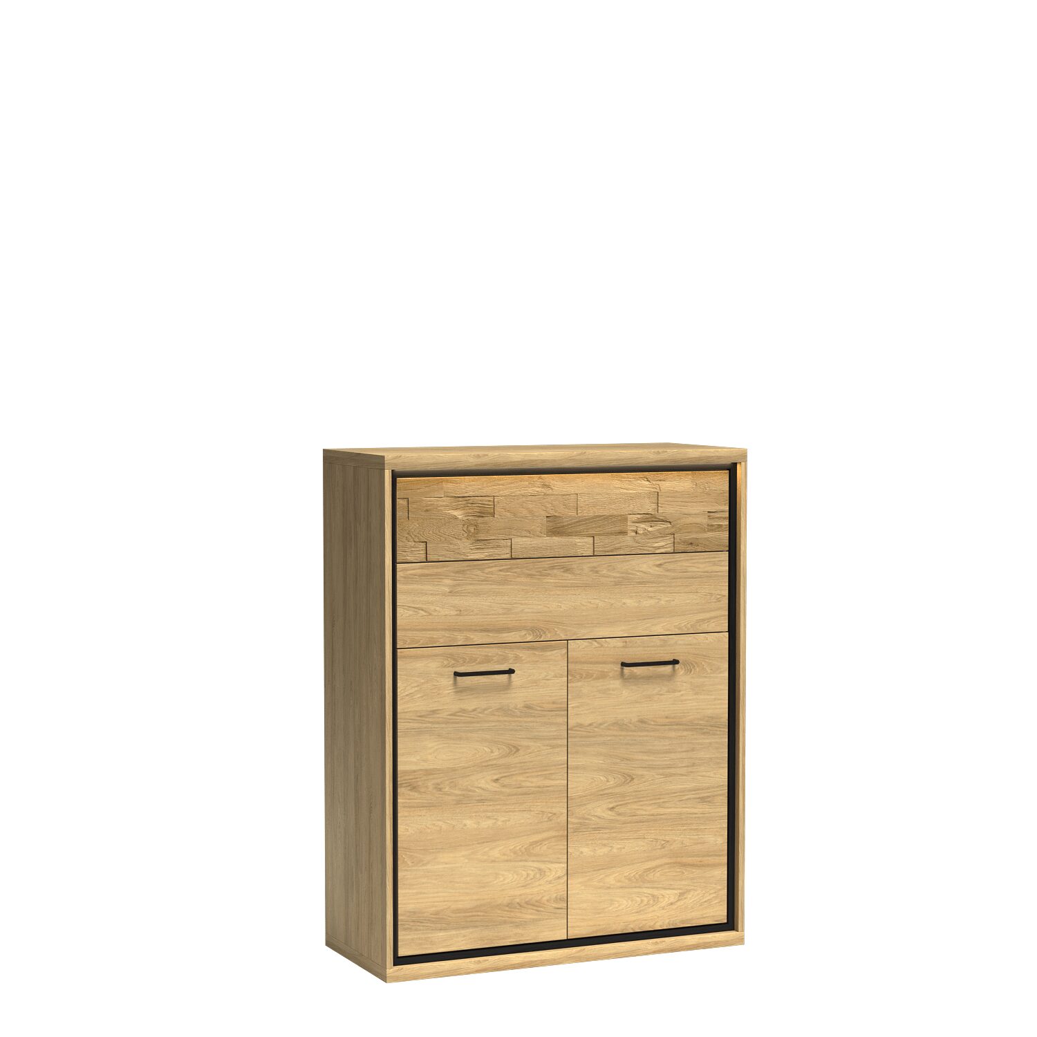 Atraskite MEDIOLAN-6 komodos žavesį ir funkcionalumą – nepakeičiamą jūsų interjero elementą. Elegantiška šviesios hikorijos spalvos išvaizda puikiai tinka industrinio stiliaus erdvėms ir suteikia autentiškumo. Dėl gerai apgalvoto dizaino komoda tampa ne tik praktišku baldu, bet ir ryškia dekoracija, patraukiančia kiekvieno svečio akį. Viršutinėje komodos dalyje yra du erdvūs stalčiai, kurie atsidaro palietus, todėl itin patogu pasiekti laikomus daiktus. Šiuose tvirtuose stalčiuose tilps būtiniausi namų aksesuarai, todėl tai idealus sprendimas svetainėms, miegamiesiems ar valgomiesiems. Apatinė dalis su erdvia spinta su lentyna patenkins net ir reikliausių vartotojų lūkesčius, leisdama patraukliai sutvarkyti erdvę. Juodos metalinės rankenėlės papildo lengvą korpusą, suteikdamos modernumo. Šis spalvų kontrastas paverčia MEDIOLAN-6 komodą tikru jūsų interjero akcentu. Taip pat galite naudoti papildomus elementus, pavyzdžiui, tos pačios spalvos kojeles, kurios pabrėš industrinį stilių ir suteiks harmonijos visam kambario išdėstymui.