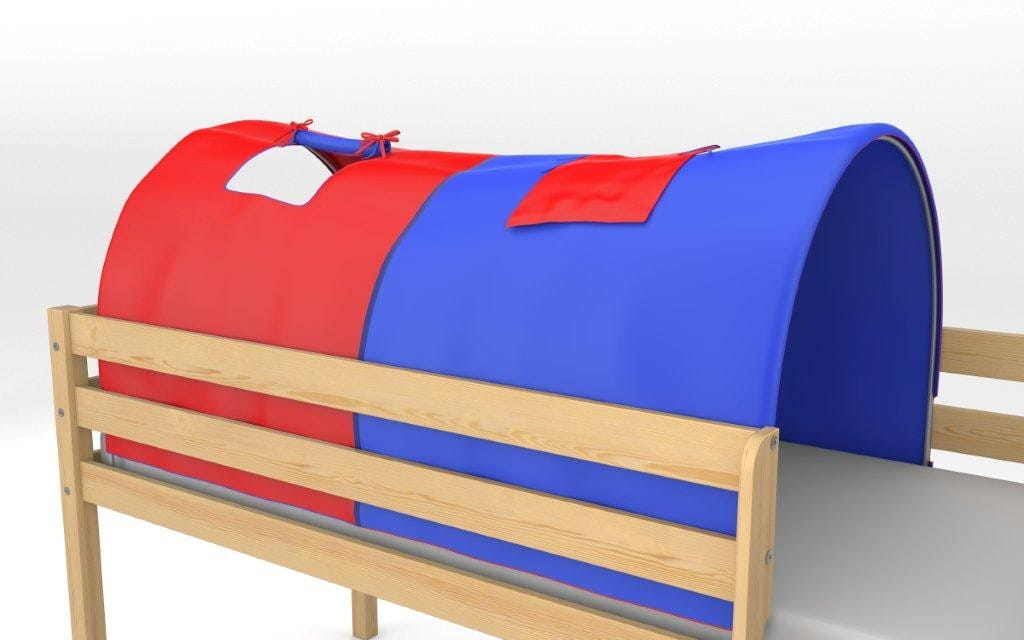 Šis didelis, mėlynai raudonas tunelis puikiai papildo dviaukštę lovą. Jį galima montuoti ant viršutinio lygio. Jis ne tik gerai apsaugo, pavyzdžiui, nuo tiesioginių saulės spindulių, bet ir gali būti naudojamas kaip pagrindas arba slėptuvė įvairiems kūrybiniams žaidimams. Tunelis turi vieną langą stogelyje, kurį galima bet kada uždaryti. Jis pagamintas iš skalbiamos medvilnės. Tunelį lengva surinkti. Į komplektą įeina visi reikalingi priedai. Taip pat galima įsigyti šiek tiek mažesnio dydžio dvigubą gaminį. Jis dera prie vieno iš galimų bokštelių ir apatinio lygio užuolaidų. Spalva: raudona/mėlyna.