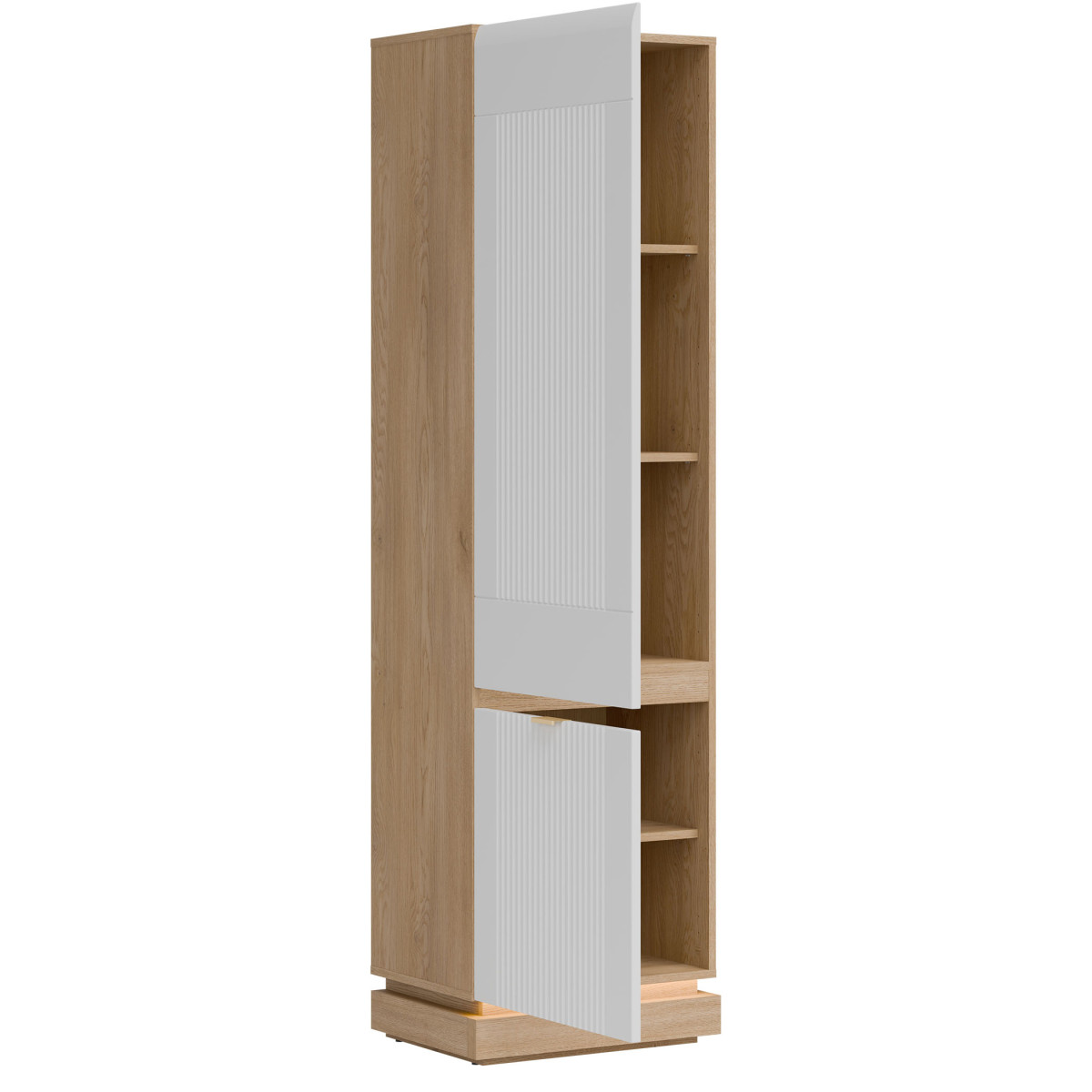 „MILTON ML07“ spintelė – elegantiškas ir funkcionalus „MILTON“ kolekcijos papildymas, puikiai tinkantis moderniam interjerui, kuriame dera erdvė ir estetika. Aukšta, rakinama konstrukcija sukurta maksimaliam talpumui – vidinės lentynos puikiai tinka knygoms, dokumentams ir kasdieniams aksesuarams laikyti, užtikrinant tvarką ir lengvą prieigą prie turinio. Matiniai MDF fasadai, siūlomi įvairių prislopintų spalvų, pasižymi subtiliu frezavimu, kuris pabrėžia modernų, tačiau nesenstantį baldo charakterį. Stilingos auksinės rankenėlės suteikia elegantišką apdailą. „Cremona Torro Oak“ korpusas suteikia erdvei natūralios šilumos ir harmoningai papildo fasadų spalvas, sukurdamas modernią, tačiau jaukią kompoziciją. Spintelė aprūpinta švelnaus uždarymo sistema, užtikrinančia išskirtinį komfortą. Tai puikus pasirinkimas svetainei, biurui ar prieškambariui – visur, kur svarbiausia yra stilius, funkcionalumas ir aukštos kokybės meistriškumas.
