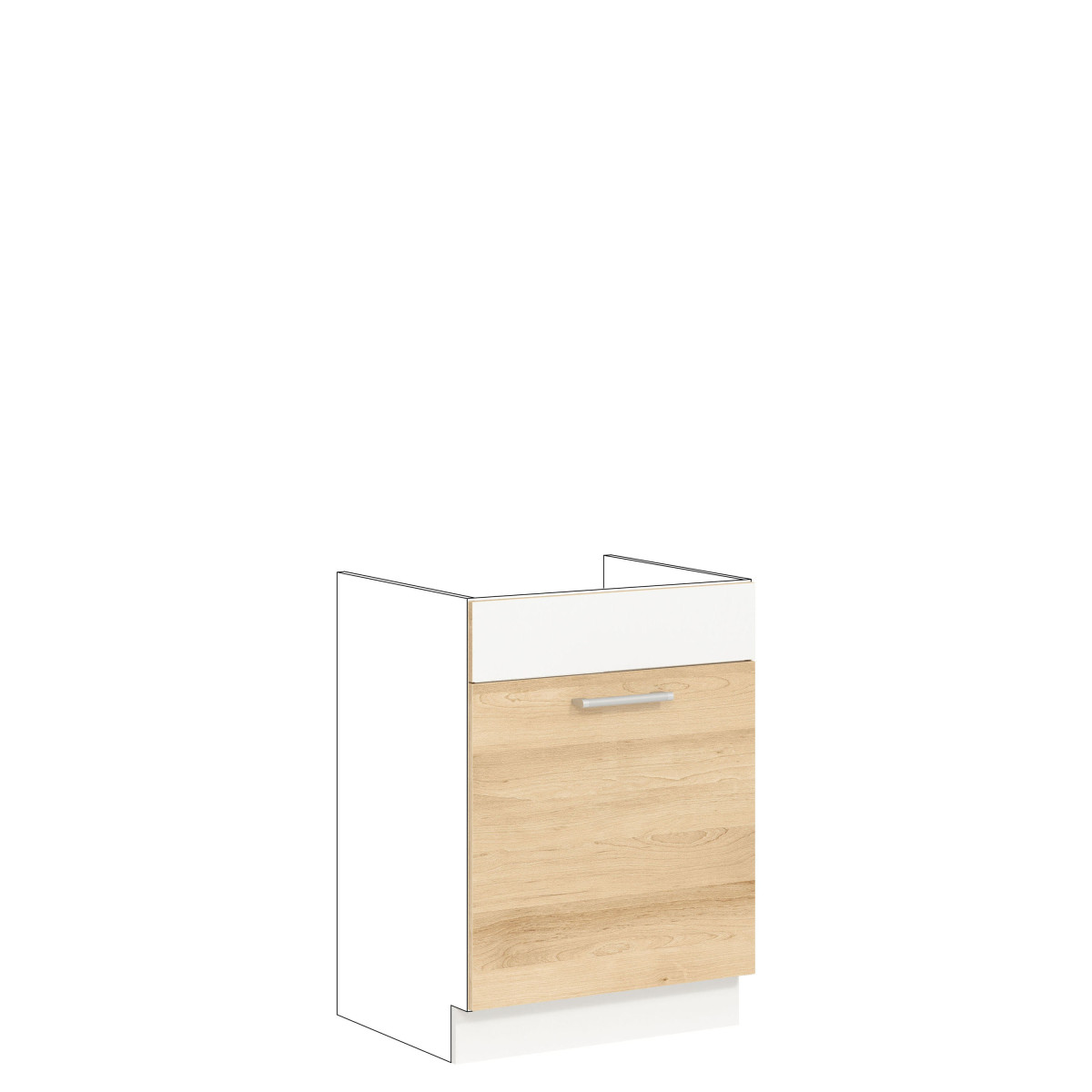 Viršutinė spintelė K/D MD10/G60NW iš „Modena“ virtuvės kolekcijos. Ši vienpusė kampinė spintelė, atsidaranti į kairę arba į dešinę, turi dvi lentynas, kuriose tikrai tilps visi jūsų reikalingi virtuvės reikmenys. 60 cm gylio ir 72 cm aukščio ji puikiai papildo viršutinį virtuvės baldą kampinės virtuvės koncepcijoje. Spintelę reikia įsigyti dviem atskiromis dalimis (priekine dalimi ir korpusu). Priekinė dalis yra šviesios „Rijeka“, tamsios „Rijeka“, buko / blizgios baltos ir blizgios baltos / matinės grafito spalvos, o korpusas – šviesios „Rijeka“ spalvos. Galimos priekinės dalies spalvos leidžia pritaikyti dizainą pagal individualius poreikius. Visą kolekciją sudaro atskiri elementai, kuriuos galite pasirinkti ir surinkti patys arba rinktis iš kelių jau paruoštų rinkinių. Papildomi kolekcijos privalumai: reguliuojamos kojelės ant pagrindinių spintelių, trimačiai reguliuojami pakabos laikikliai ant viršutinių spintelių ir aukštos kokybės priedai. Spintelė, kaip ir visa „Modena“ baldų kolekcija, buvo kruopščiai suprojektuota, siekiant užtikrinti didelę daiktų laikymo erdvę ir ilgalaikį naudojimą.