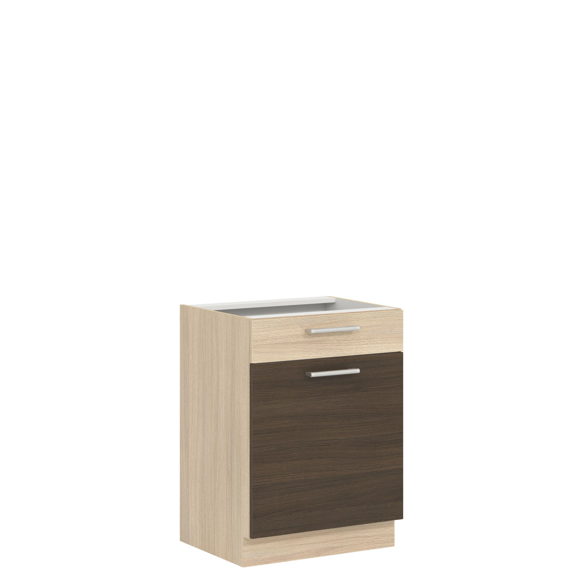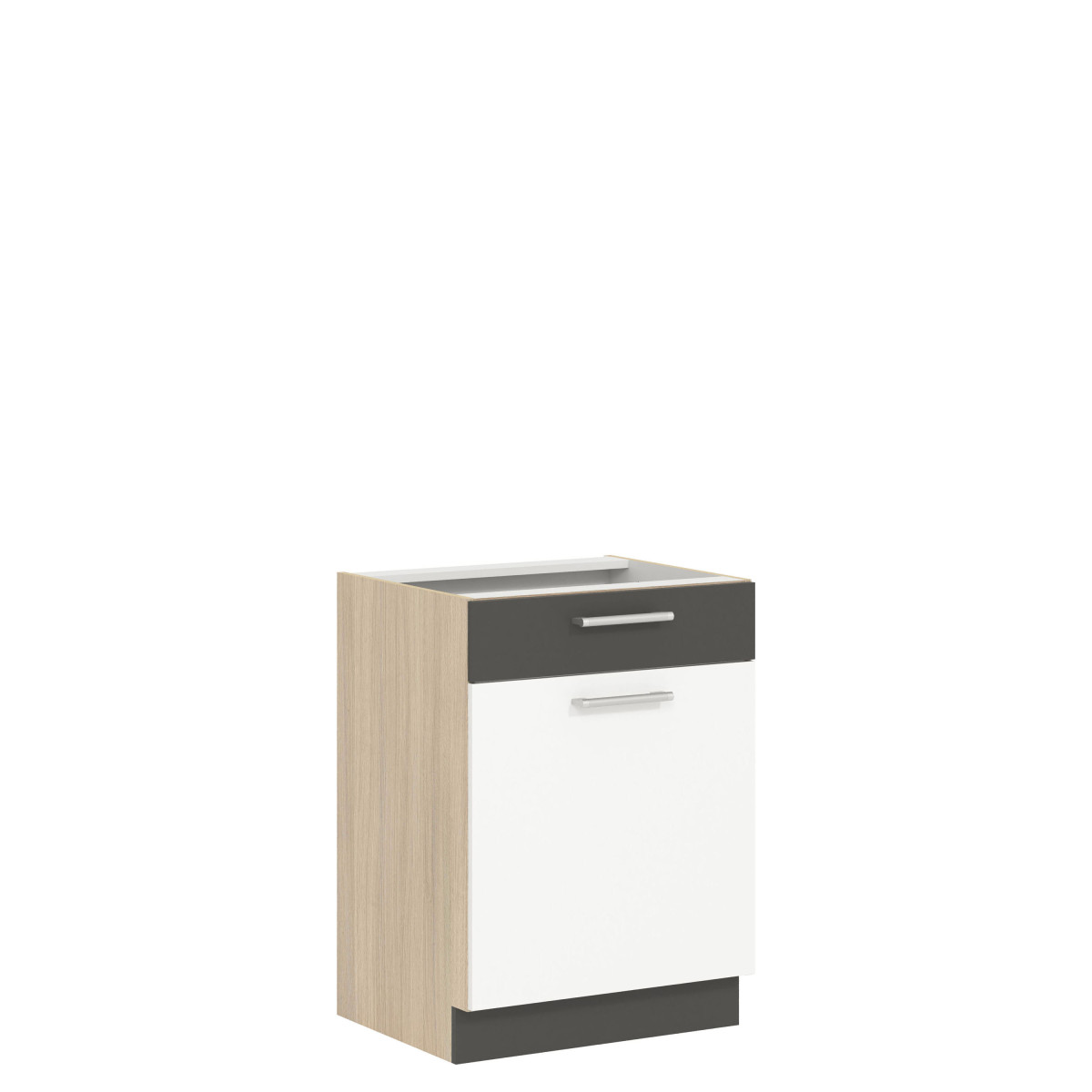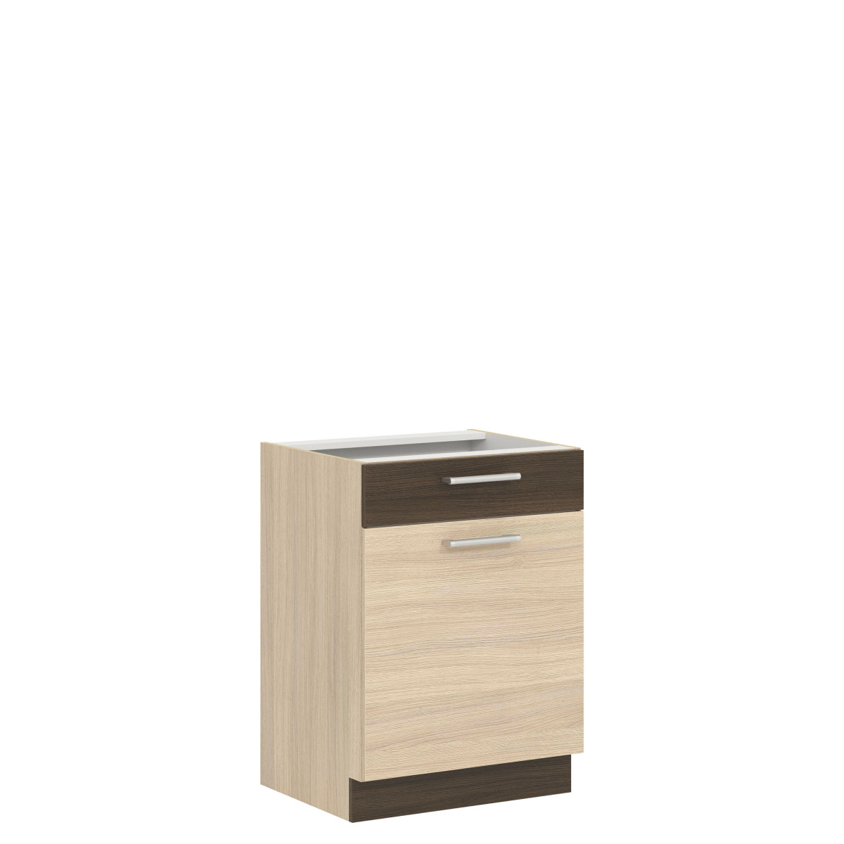 MD16/D60S1 apatinė spintelė yra iš „Modena“ virtuvės kolekcijos. Ši vienos priekinės dalies spintelė su stalčiumi tiesiai virš stalviršio atsidaro į kairę arba į dešinę ir turi dvi nišas, kuriose tikrai tilps indai ir virtuvės reikmenys, kuriuos pravartu turėti po ranka. 60 cm pločio ir 82 cm aukščio ji puikiai papildo apatinę virtuvės spintelę. Spintelę reikia įsigyti dviem atskiromis dalimis (priekine dalimi ir korpusu). Priekinė dalis yra šviesios „Rijeka“, tamsios „Rijeka“, buko / blizgios baltos ir blizgios baltos / matinės grafito spalvos, o korpusas – šviesios „Rijeka“ spalvos. Galimos priekinės dalies spalvos leidžia pritaikyti dizainą pagal individualius poreikius. Visą kolekciją sudaro atskiri elementai, kuriuos galite pasirinkti ir surinkti patys arba rinktis iš kelių jau paruoštų rinkinių. Papildomi kolekcijos privalumai: reguliuojamos apatinių spintelių kojelės, trimačiai reguliuojami viršutinių spintelių pakabos laikikliai ir aukštos kokybės priedai. Spintelė, kaip ir visa „Modena“ baldų kolekcija, buvo kruopščiai suprojektuota, siekiant užtikrinti didelę daiktų laikymo erdvę ir ilgalaikį naudojimą.