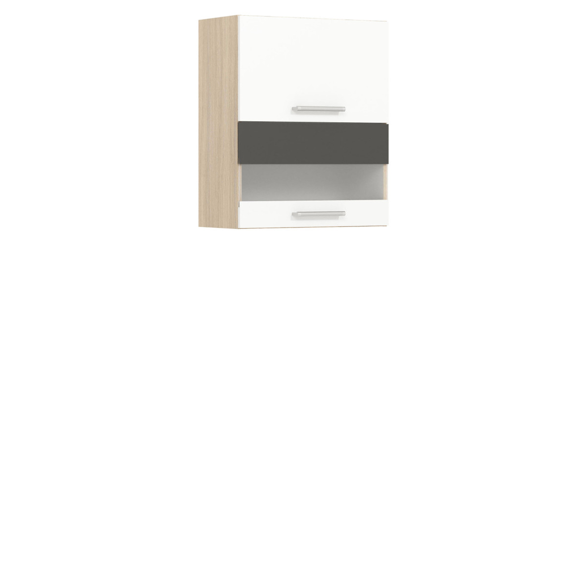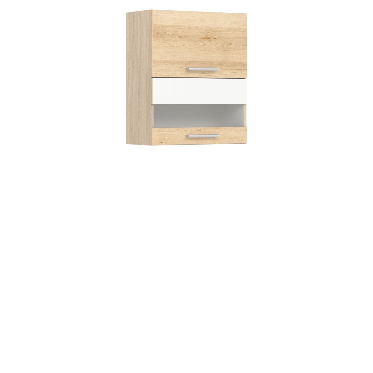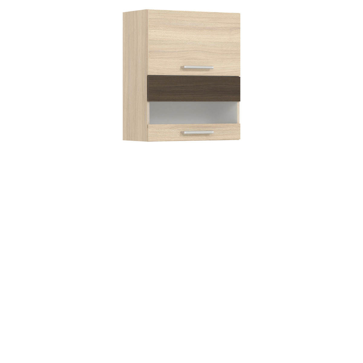 Viršutinė spintelė MD8/G60W iš „Modena“ virtuvės kolekcijos. Šioje dviejų lygių, iš dalies įstiklintoje sieninėje spintelėje, kuri atsidaro į viršų dujinių keltuvų dėka, tikrai tilps visi jūsų reikalingi virtuvės reikmenys. Stiklinis priekis gražiai išryškina stalo įrankius ir stiklinius indus. Papildoma spintelės savybė – galimybė įmontuoti pasirenkamą indų džiovyklę. 60 cm pločio ir 72 cm aukščio ji puikiai papildo viršutinį virtuvės segmentą. Spintelę reikia įsigyti dviem atskiromis dalimis (priekine dalimi ir korpusu). Priekinė dalis yra šviesios „Rijeka“, tamsios „Rijeka“, buko / blizgios baltos ir blizgios baltos / matinės grafito spalvos, o korpusas – šviesios „Rijeka“ spalvos. Galimos priekinės dalies spalvos leidžia pritaikyti dizainą pagal individualius poreikius. Visą kolekciją sudaro atskiri elementai, kuriuos galite pasirinkti ir surinkti patys arba rinktis iš kelių paruoštų rinkinių. Papildomi kolekcijos privalumai: reguliuojamos kojelės apatinėse spintelėse, trimačiai reguliuojami pakabos laikikliai viršutinėse spintelėse ir aukštos kokybės priedai. Ši spintelė, kaip ir visa „Modena“ baldų kolekcija, buvo kruopščiai suprojektuota taip, kad būtų pakankamai vietos daiktams susidėti ir ilgaamžė.
