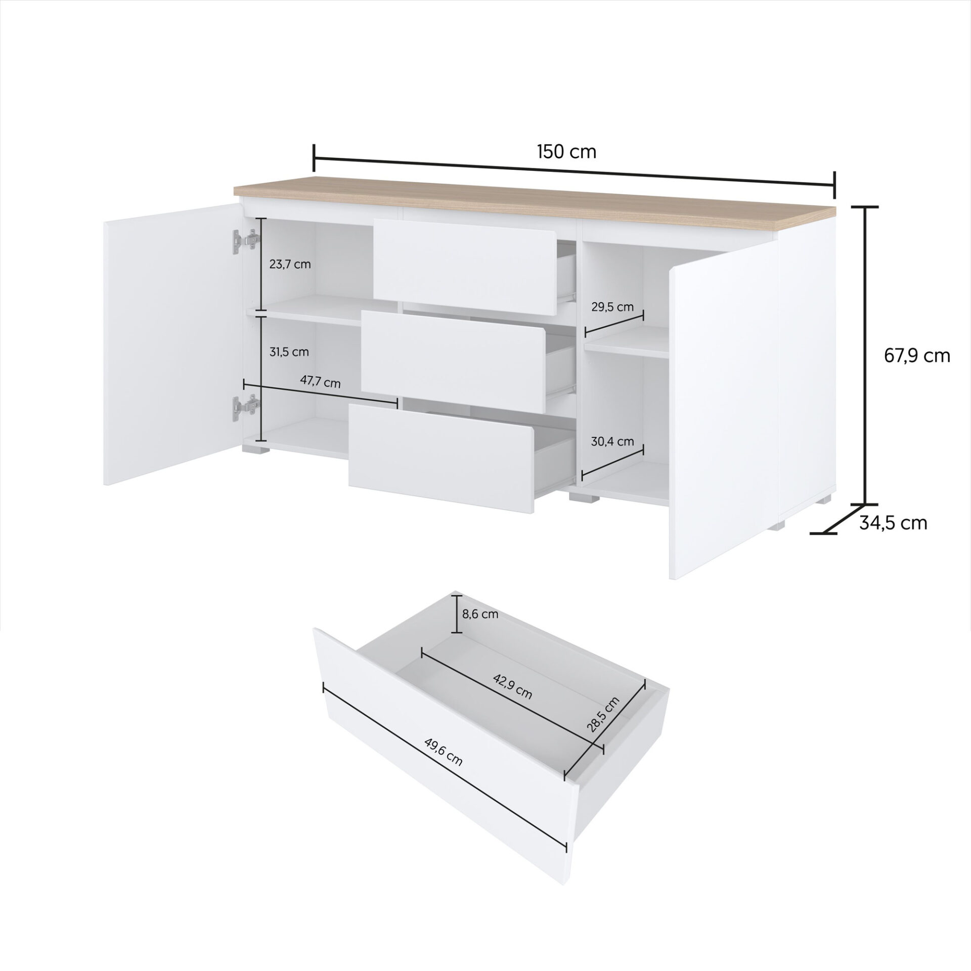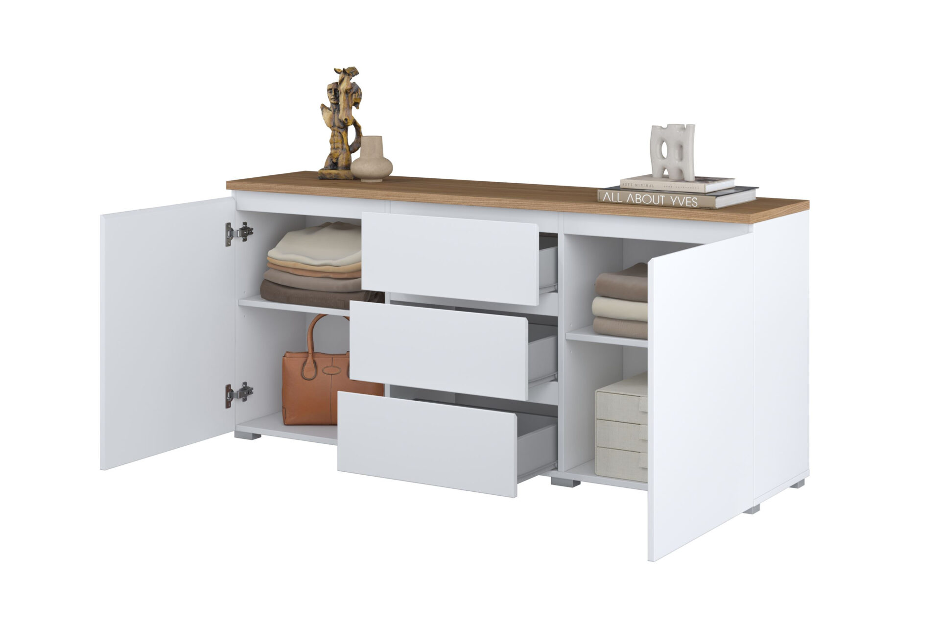 Modo – Komoda 2D3S Baltas matinis ąžuolas Mauvella