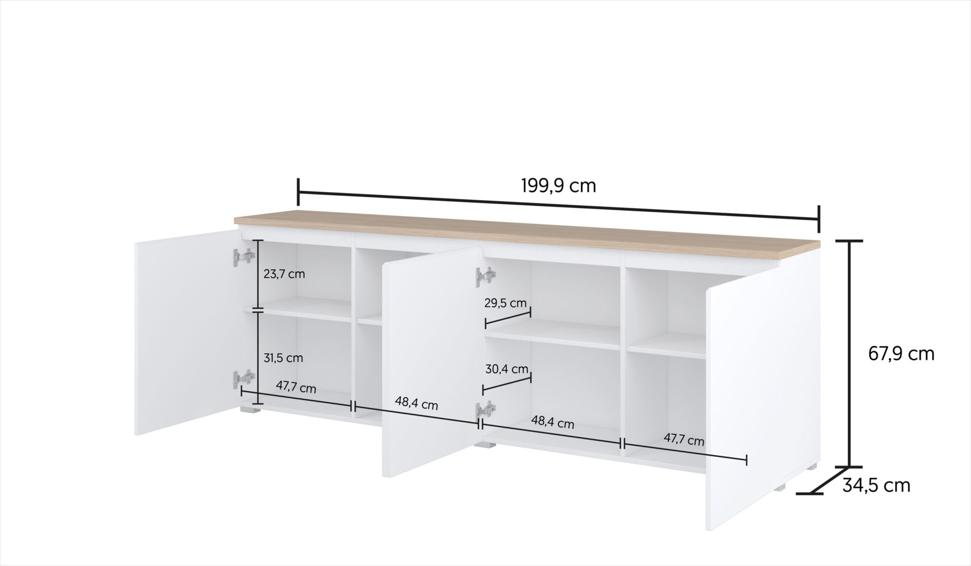 Atraskite unikalų „Modo 4D“ komodos dizainą ir funkcionalumą, kuri neabejotinai papuoš bet kokį interjerą. Stilingas matinės baltos ir elegantiškos „Mauvella“ ąžuolo derinys daro ją puikiai tinkančią tiek moderniam, tiek klasikiniam interjerui. 200 cm pločio, 68 cm aukščio ir 35 cm gylio komoda ne tik atrodo patraukliai, bet ir siūlo daug vietos daiktams susidėti. Tai idealus sprendimas svetainei, miegamajam ar prieškambariui. Kiekvieną dieną naudodamiesi „Modo“ komoda, mėgausitės jos keturių durelių dizaino funkcionalumu. Vidus leidžia susitvarkyti įvairius daiktus – nuo drabužių iki knygų – ir lengvai pasiekti tai, kas svarbiausia. Estetinis patrauklumas taip pat padeda išvengti netvarkos, todėl visi gali atsipalaiduoti tvarkingoje erdvėje. Komoda pagaminta iš aukštos kokybės laminuotos plokštės, užtikrinančios patvarumą ir atsparumą kasdieniam naudojimui. Metaliniai vyriai ir apačioje tvirtinamos kreipiančiosios užtikrina sklandų durelių atidarymą ir uždarymą, dar labiau padidindamos komfortą. „Helvetia“ prekės ženklo patirtis garantuoja, kad rinkdamiesi gaminį, jūs pasirenkate laiką.