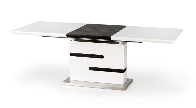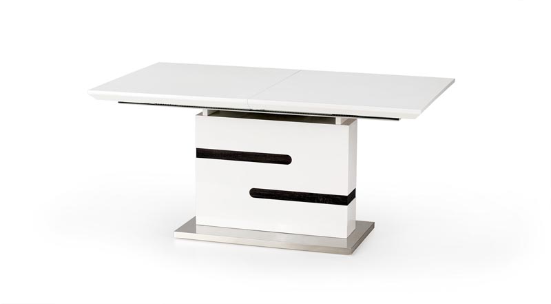 Prailginamas stalas, matmenys: 160-220/90/76 cm, medžiaga: lakuota MDF / laminuota MDF / nerūdijantis plienas, spalva: balta / pilka