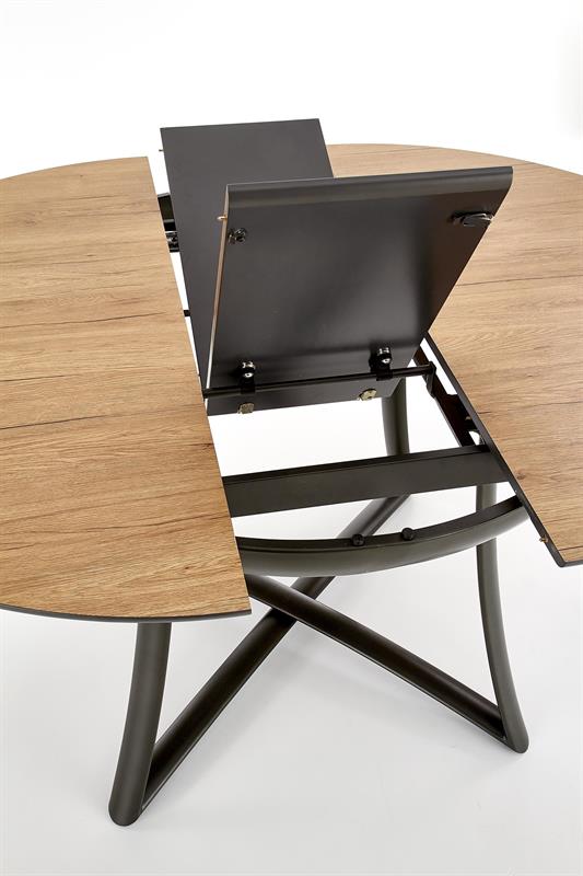 Matmenys: 118÷148/118/76 cm, prailginamas stalas, medžiaga: laminuota MDF / lakuota MDF / milteliniu būdu dažytas plienas, spalva: stalviršis – auksinis ąžuolas / pilka, kojos – antracitas