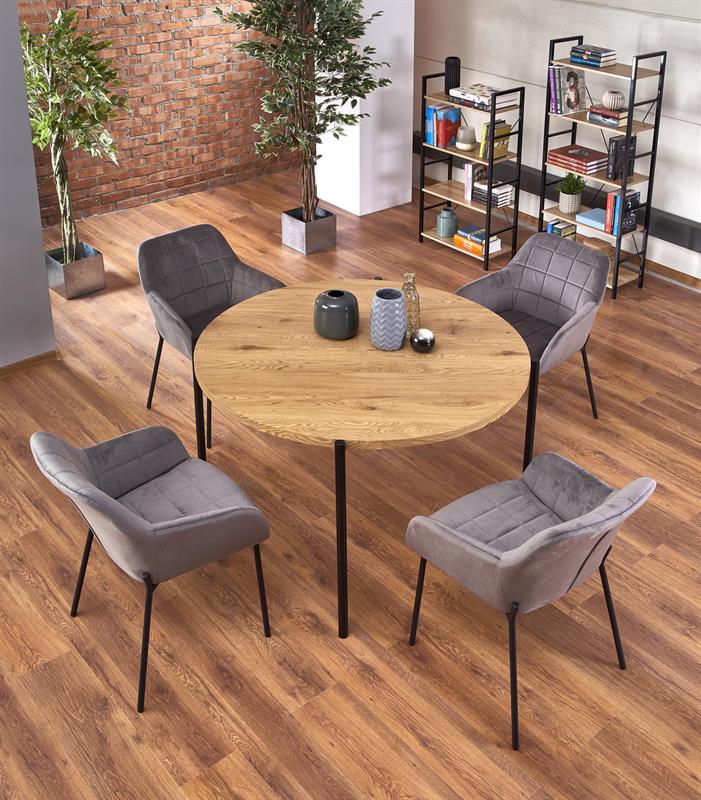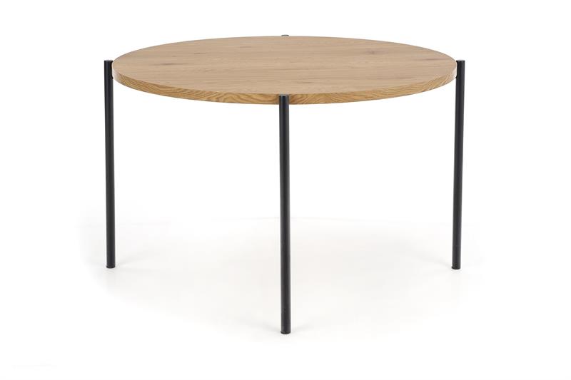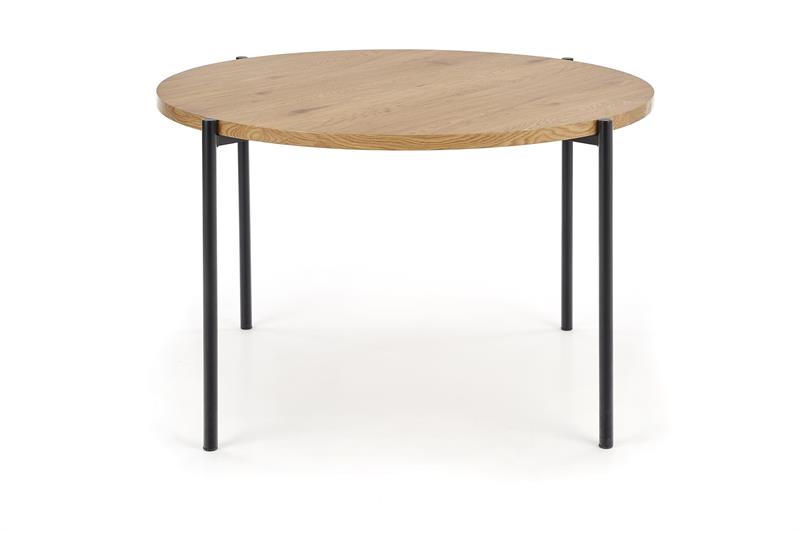 Matmenys: 120/76 cm, medžiaga: laminuotas MDF / milteliniu būdu dažytas plienas, spalva: stalviršis – auksinis ąžuolas, kojelės – juodos