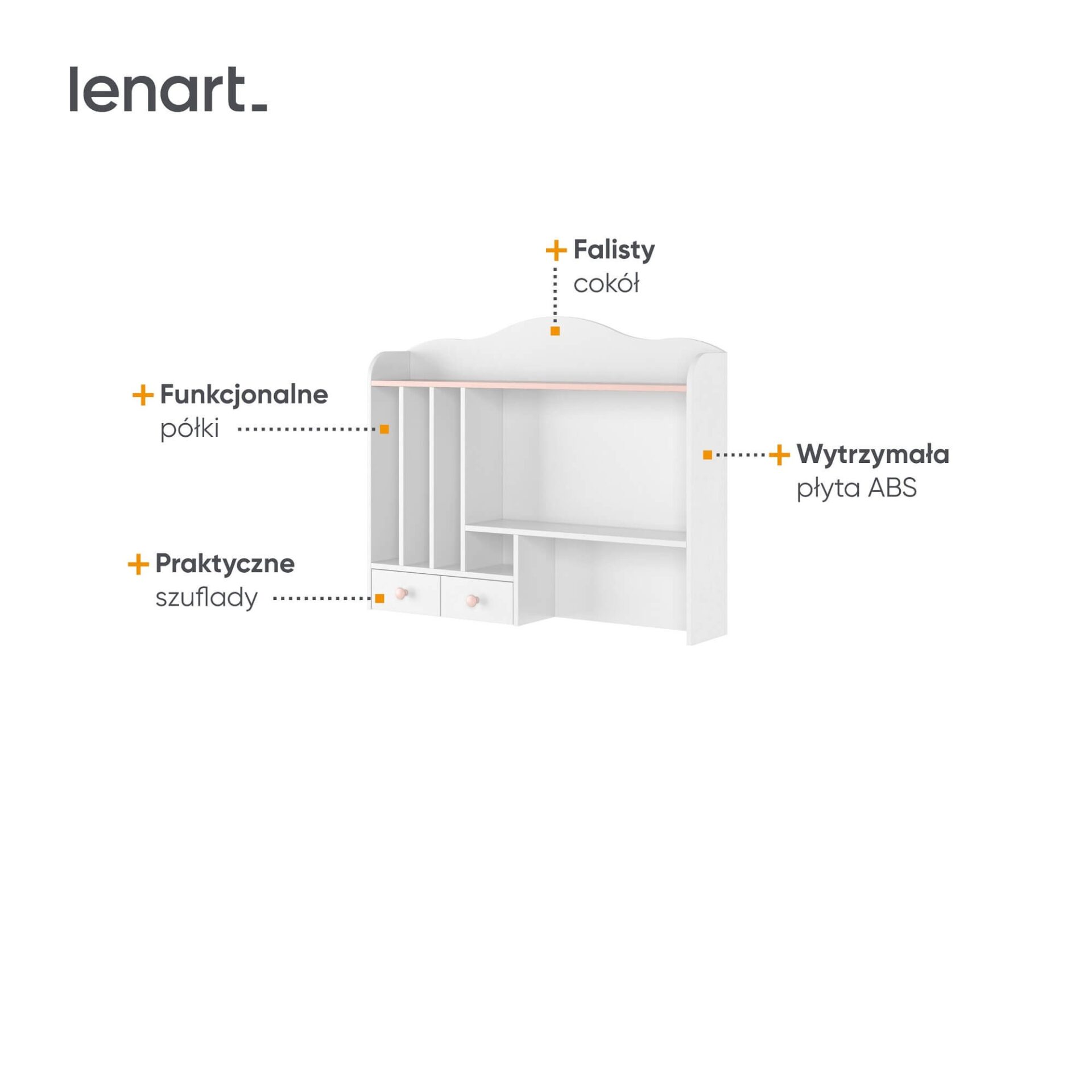 Modelis: LN-04 Spalva: balta/rožinė Matmenys: Plotis: 107 cm Aukštis: 85 cm Gylis: 20 cm Pagrindinė informacija: korpuso pavadinimas: LN-04 kolekcijos pavadinimas: LUNA korpuso indeksas: LN4BR spalva: balta/rožinė baldų tipas: praplatinama korpuso charakteristikos: 2S plotis: 107 cm aukštis: 87 cm gylis: 20 cm korpuso svoris: 24 kg surinkimas: reikalingas surinkimas kolekcijos stilius: modernus interjero tipas 1: jaunimo kambarys įranga: 3x lentynos stalčių skaičius: 2 furnitūra: rankena: plastikas Medžiaga: korpusas: laminuota medžio drožlių plokštė: 16 mm; 18 mm korpuso krašto apdaila: A 0,45 mm korpuso spalva: balta viršus: laminuota medžio drožlių plokštė; 18 mm stalviršio krašto apdaila: A 0,45 mm Klijuotų stalviršio kraštų skaičius: 1 Stalviršio spalva: rožinė Galinė sienelė: laminuota medžio drožlių plokštė; 16 mm Matoma galinės sienelės apdaila: laminatas Nematoma galinės sienelės apdaila: laminatas Galinės sienelės spalva: balta Lentyna: laminuota medžio drožlių plokštė; 16 mm Lentynos krašto apdaila: A 0,45 mm Klijuotų lentynų kraštų skaičius: 1 Leistina lentynos apkrova: 5 kg Lentynos spalva: balta Lentynų skaičius: 1 Priekis: laminuota medžio drožlių plokštė; 16 mm Priekinio krašto apdaila: A 0,45 mm Priekio spalva: balta Stalčiaus vidinė apdaila: laminuota medžio drožlių plokštė korpuso spalvos Stalčiaus dugnas: HDF plokštė; 3 mm Svarbu: šis prailginimas gaminamas pagal individualų kliento užsakymą. Užsakymo atšaukti negalima praėjus 48 valandoms nuo užsakymo pateikimo. Prašome apsipirkti atidžiai.