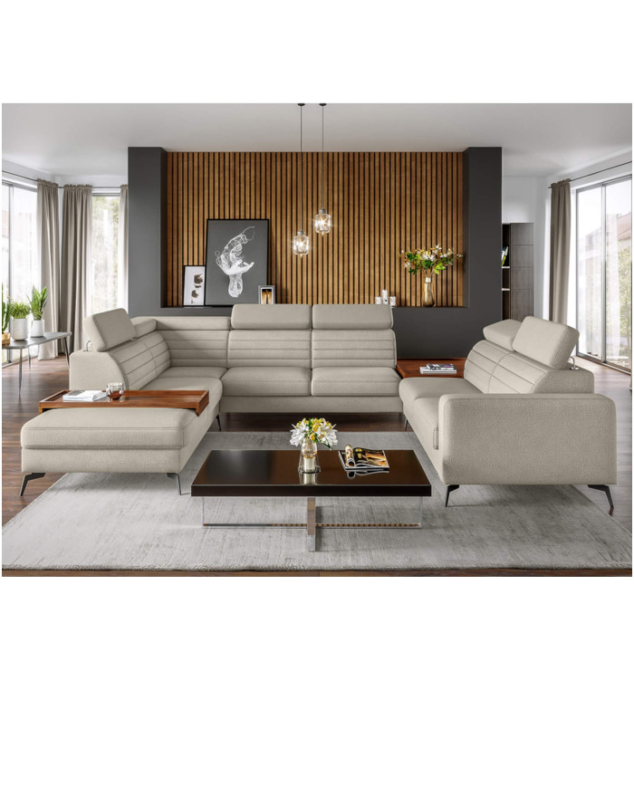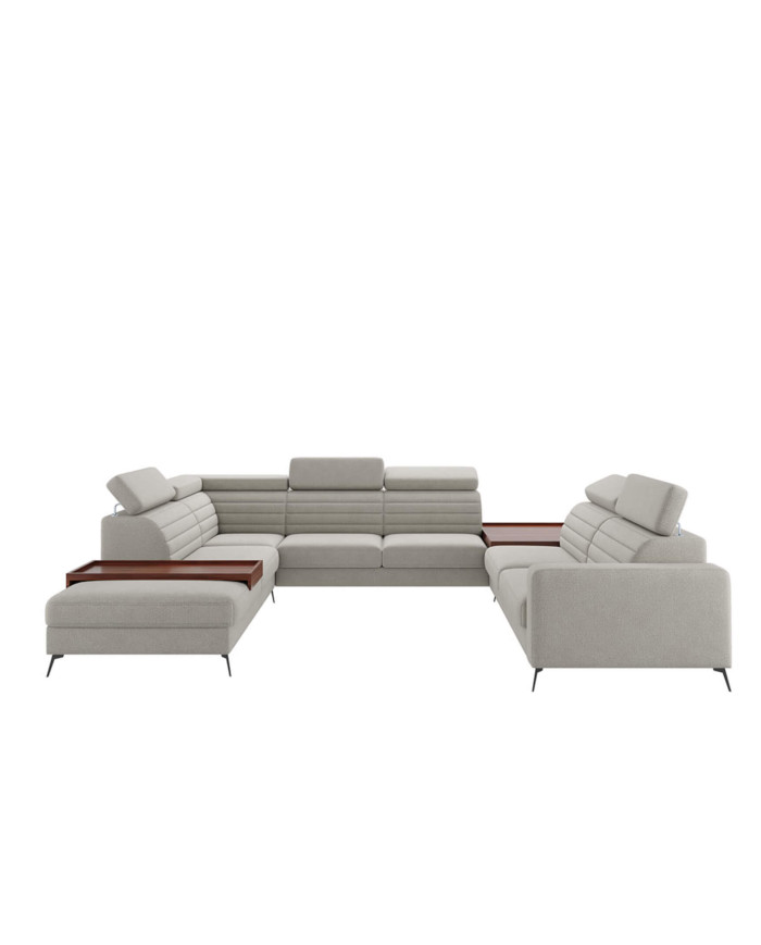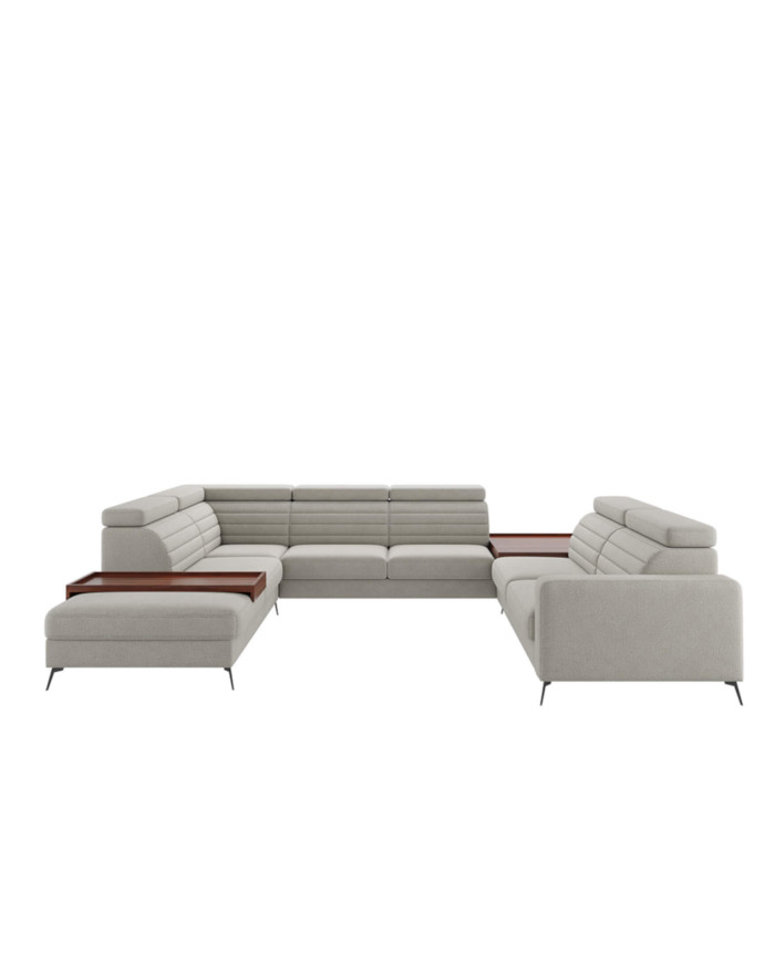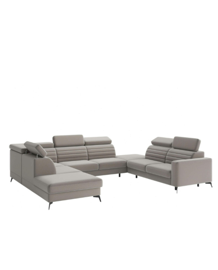 Būkite pirmas aprašęs “Amaro U formos kampinė sofa, miegojimo funkcija, konteineris, reguliuojamos galvos atramos”