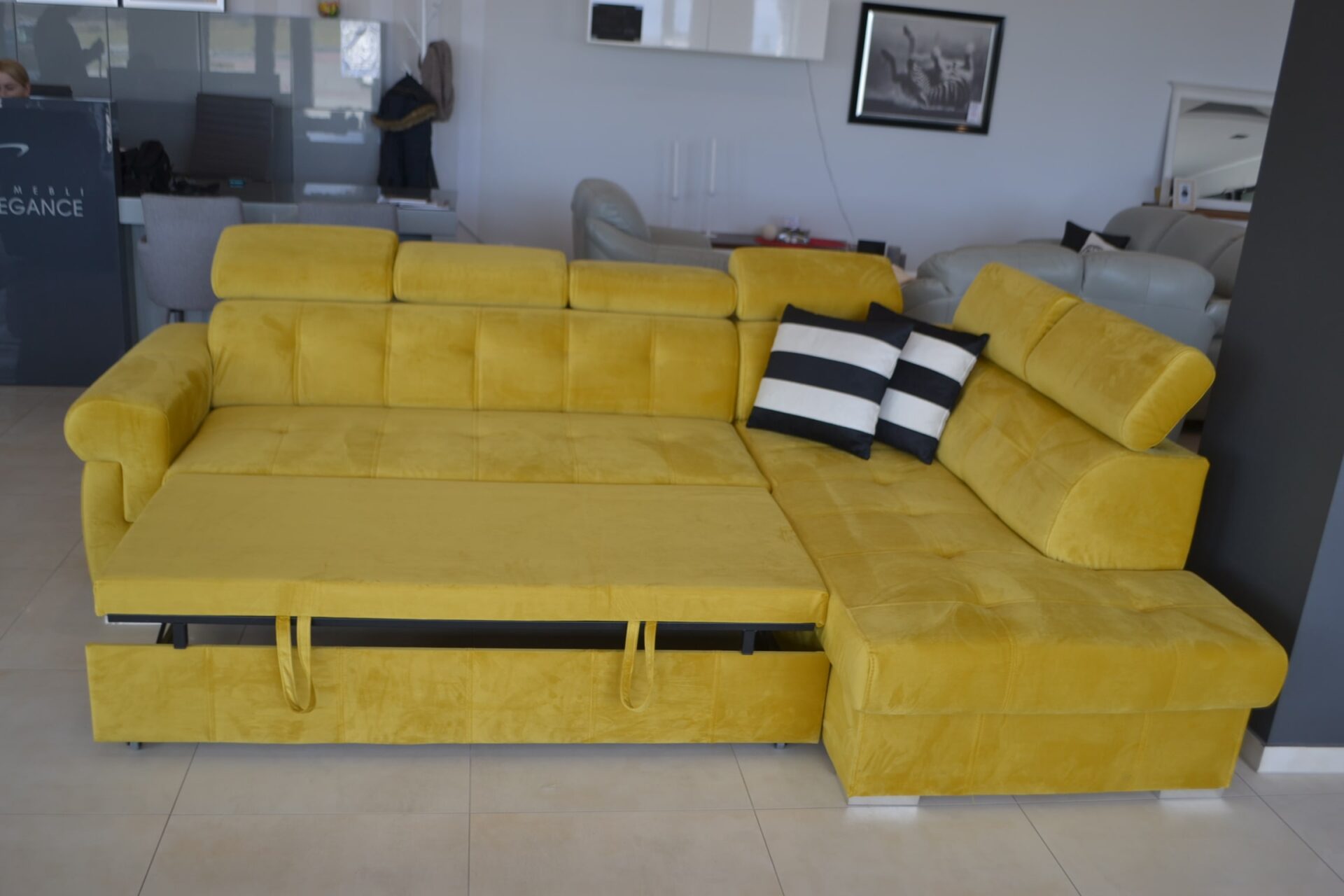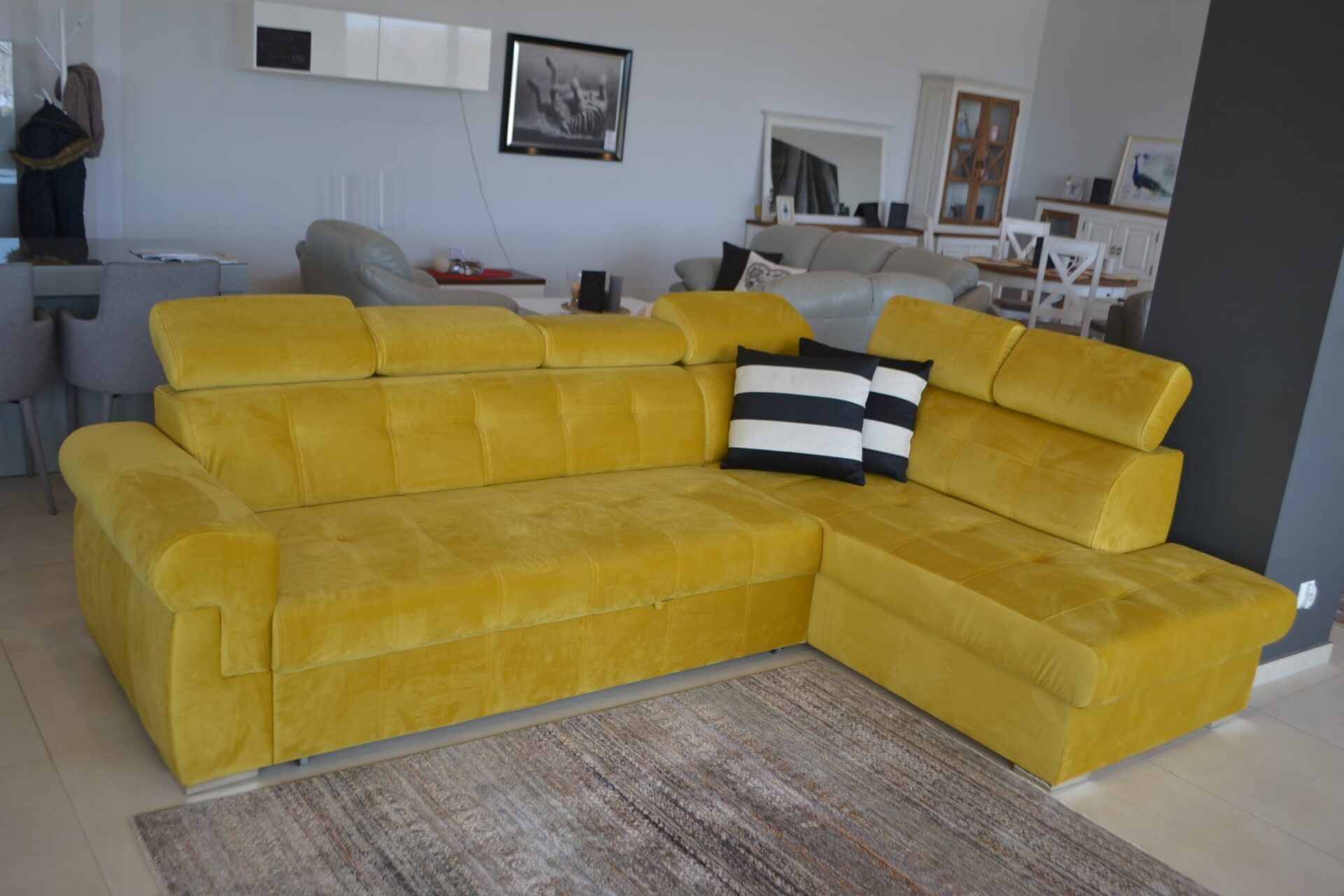Kampinė sofa ’Atlanta“ yra viena iš dažniausiai mūsų klientų renkamų kampinių sofų. Tai svajonių baldas modernaus stiliaus mėgėjams. Ši kampinė sofa apjungia daug privalumų. Dėl įmontuotos vietos daiktams susidėti ji puikiai tinka tiems, kuriems reikia papildomos vietos daiktams susidėti. Dieną ji puikiai tinka kaip gulėjimo vieta, o naktį – kaip patogi lova dviem suaugusiesiems. Reguliuojamos galvos atramos yra papildomas privalumas. Specifikacijos: - „Cavalter“ spyruoklės, - didelio elastingumo putos, - miegojimo funkcija, - patalynės laikymo vieta, - reguliuojamos galvos atramos, - siūlės.