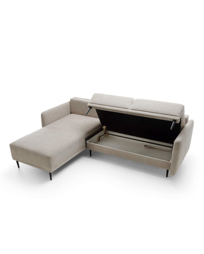Palyginti Elegantiška išskleidžiama kampinė sofa „Bardo“ dėl savo unikalaus dizaino puikiai derės prie beveik bet kokio šiuolaikinio interjero stiliaus. Tai puikus sprendimas mažoms erdvėms, užtikrinantis komfortą ir funkcionalumą. Ji turi DL miegojimo funkciją ir patalynės skyrių. Sėdynės pagalvėlės aprūpintos vingiuotomis spyruoklėmis ir poliuretano putomis, o daugiakamerės atlošo pagalvėlės užpildytos specialiu silikono ir poliuretano mišiniu. Kampinė sofa siūloma su įvairiais apmušalais, o pavyzdžių galite rasti „Product Creator“ svetainėje. Ji siūloma kairiarankiams ir dešiniarankiams. Komplekte yra išskirtinės, trikampės pagalvėlės, o surinkimas yra minimalus.