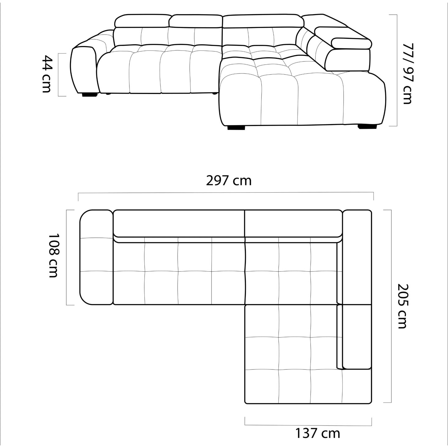 Kampinė sofa „Bull L“ – tai modernus ir funkcionalus svetainės baldas, išsiskiriantis masyvia, geometrine forma ir įspūdingu dygsniavimu visoje sėdynėje. Įrengtos reguliuojamos galvos atramos ir platūs porankiai, ji užtikrina maksimalų komfortą. Tvirta konstrukcija, vingiuotos spyruoklės ir aukštos kokybės putplastis garantuoja patvarumą ir komfortą ilgus metus. Puikiai tinka tiems, kurie vertina dizainą, komfortą ir erdvumą.
