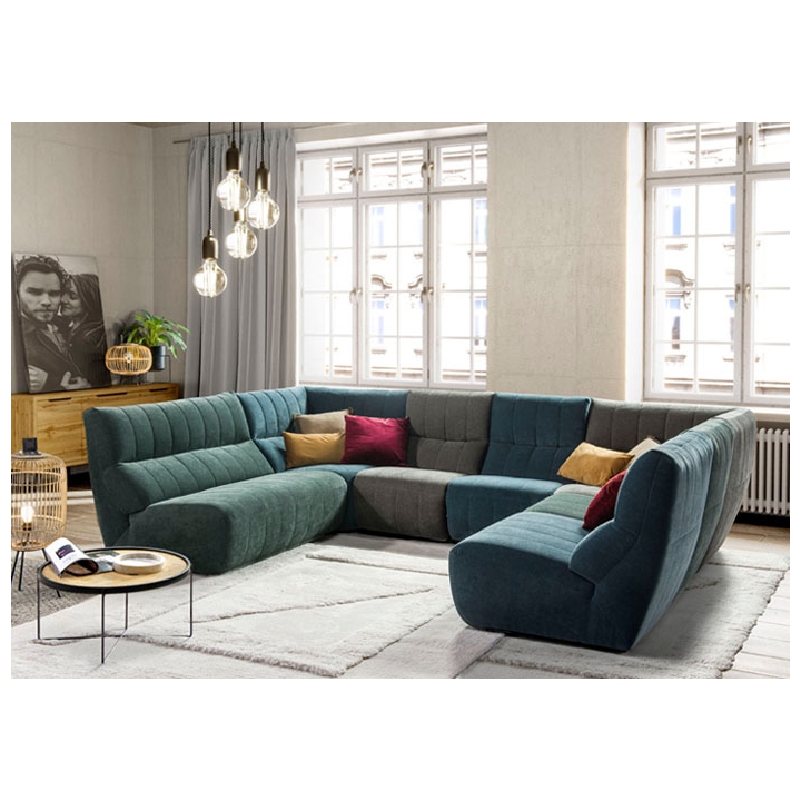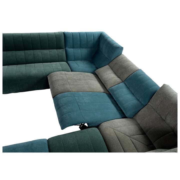 „Camaro 2-TE-1RF-1RF-TE-1-1.5“ kampinė sofa su laipteliais yra puikus pasirinkimas ieškantiems erdvaus baldo, kuris taptų svetainės traukos centru. Modulinis dizainas leidžia sukurti erdvią U formos sėdimąją zoną. Šis modelis skatina leisti laiką kartu, suteikia erdvės daugiau šeimos narių ir svečių.