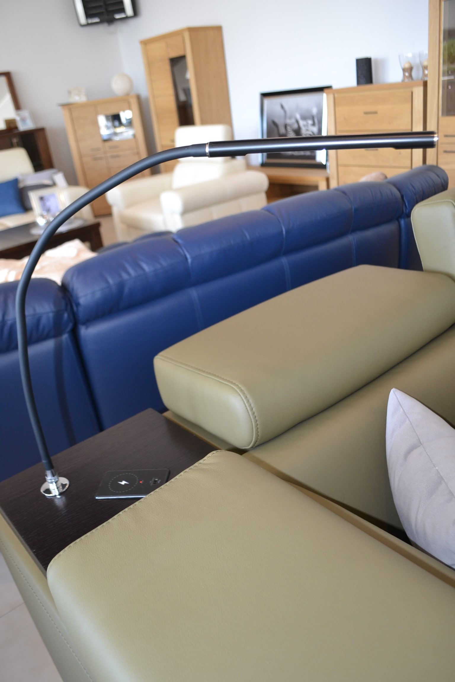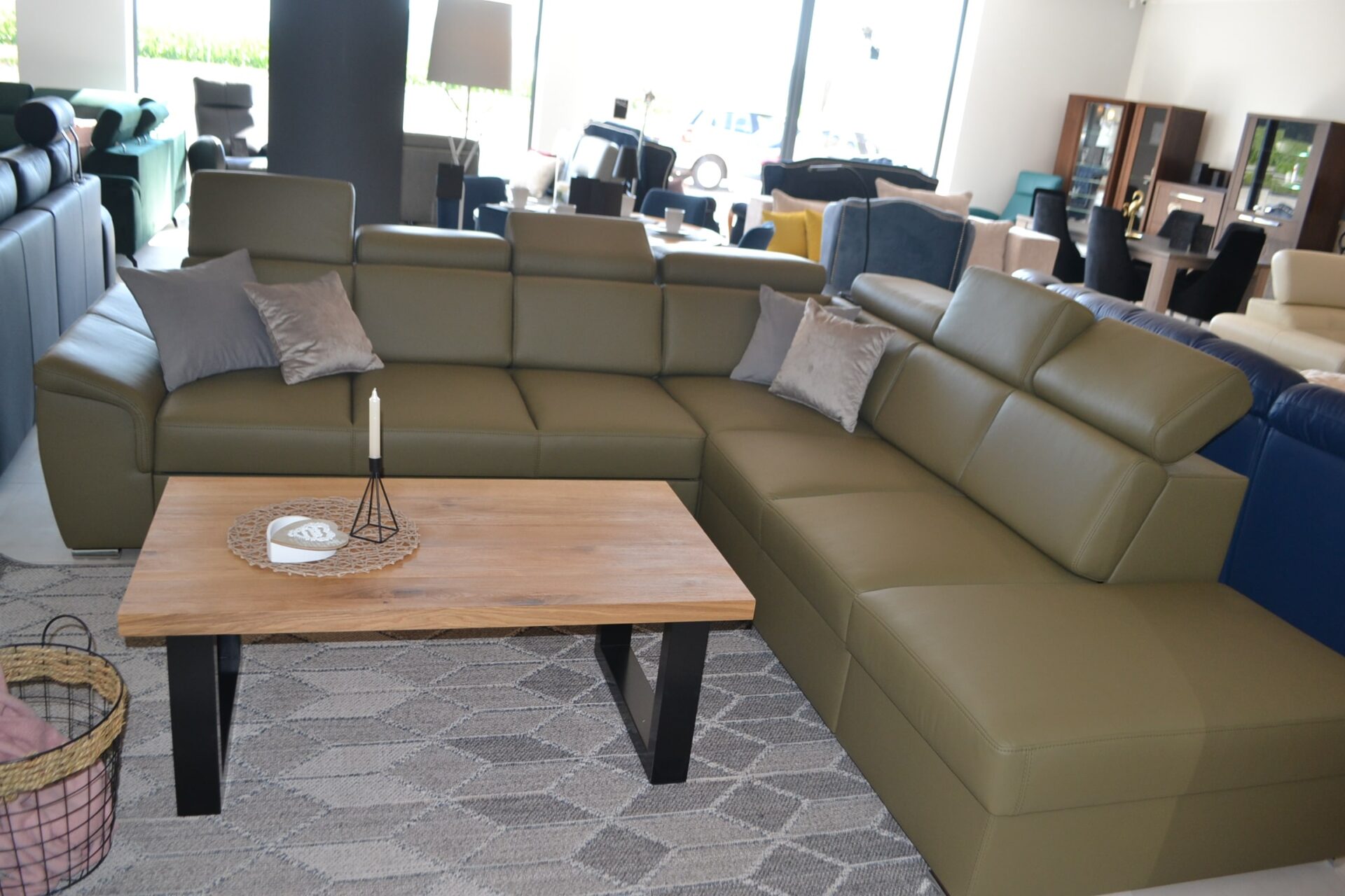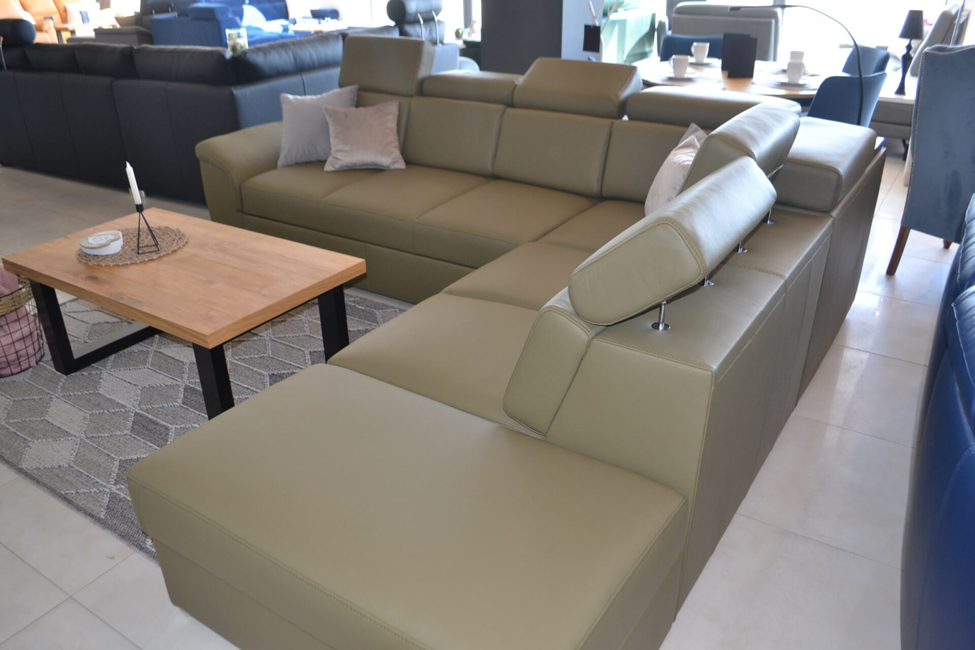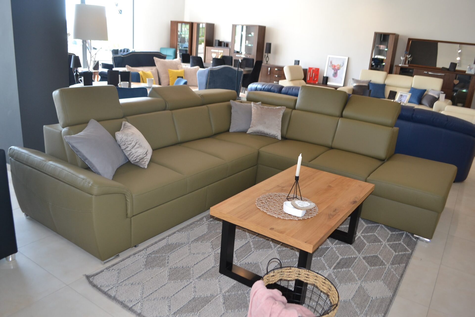 „Cayenne“ kampinė sofa pasižymi moderniu, tačiau unikaliu dizainu. Dėl savo išvaizdos ji puikiai tinka tiek paprastiems, tiek didesniems interjerams. Specifikacijos: – zigzago spyruoklės, – labai elastingas HR putplastis, – reguliuojamos galvos atramos, – kasdienio miegojimo funkcija, – pritvirtinamas pufas su daiktadėže, – juoda lempa, – indukcinis įkroviklis ir USB jungtis, – sidabrinės metalinės kojelės, – aptraukta „Punch Olive“ oda