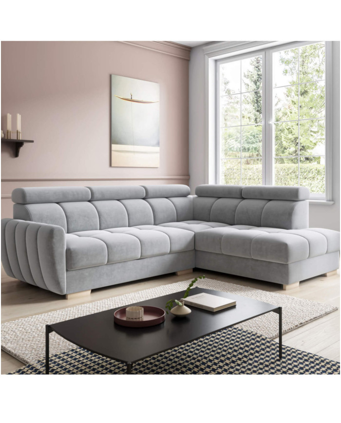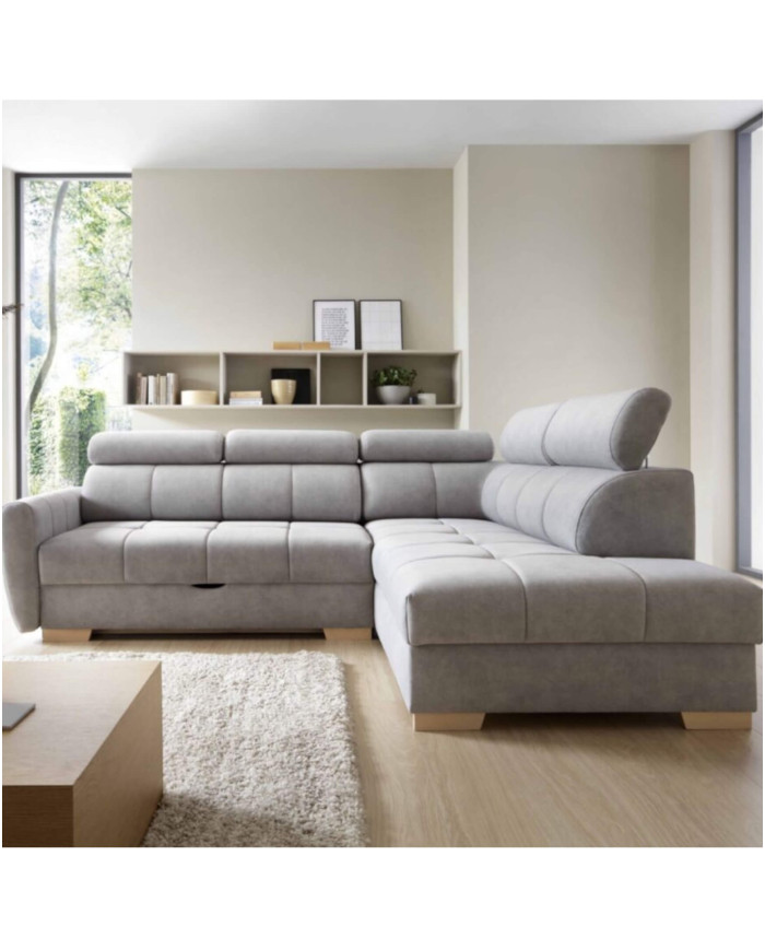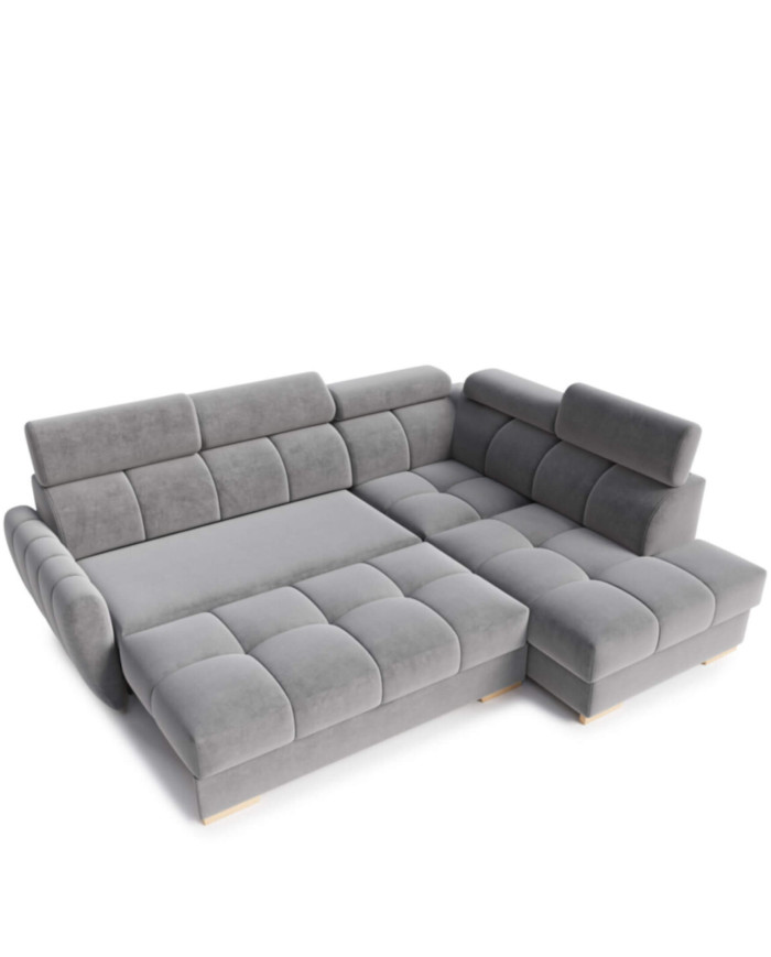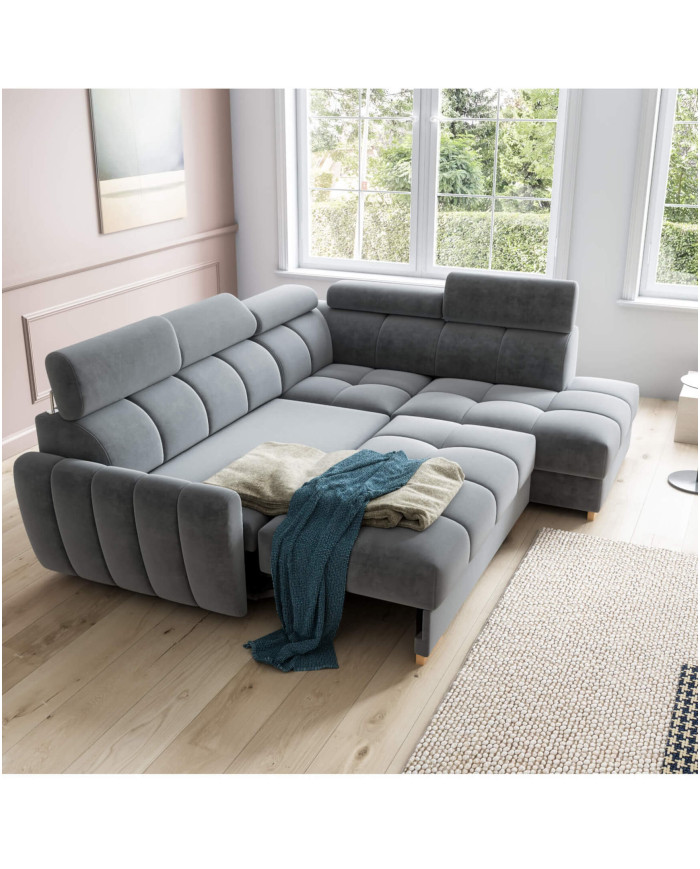 „Daytona“ kampinė sofa su miegojimo funkcija, daiktadėže, reguliuojamomis galvos atramomis