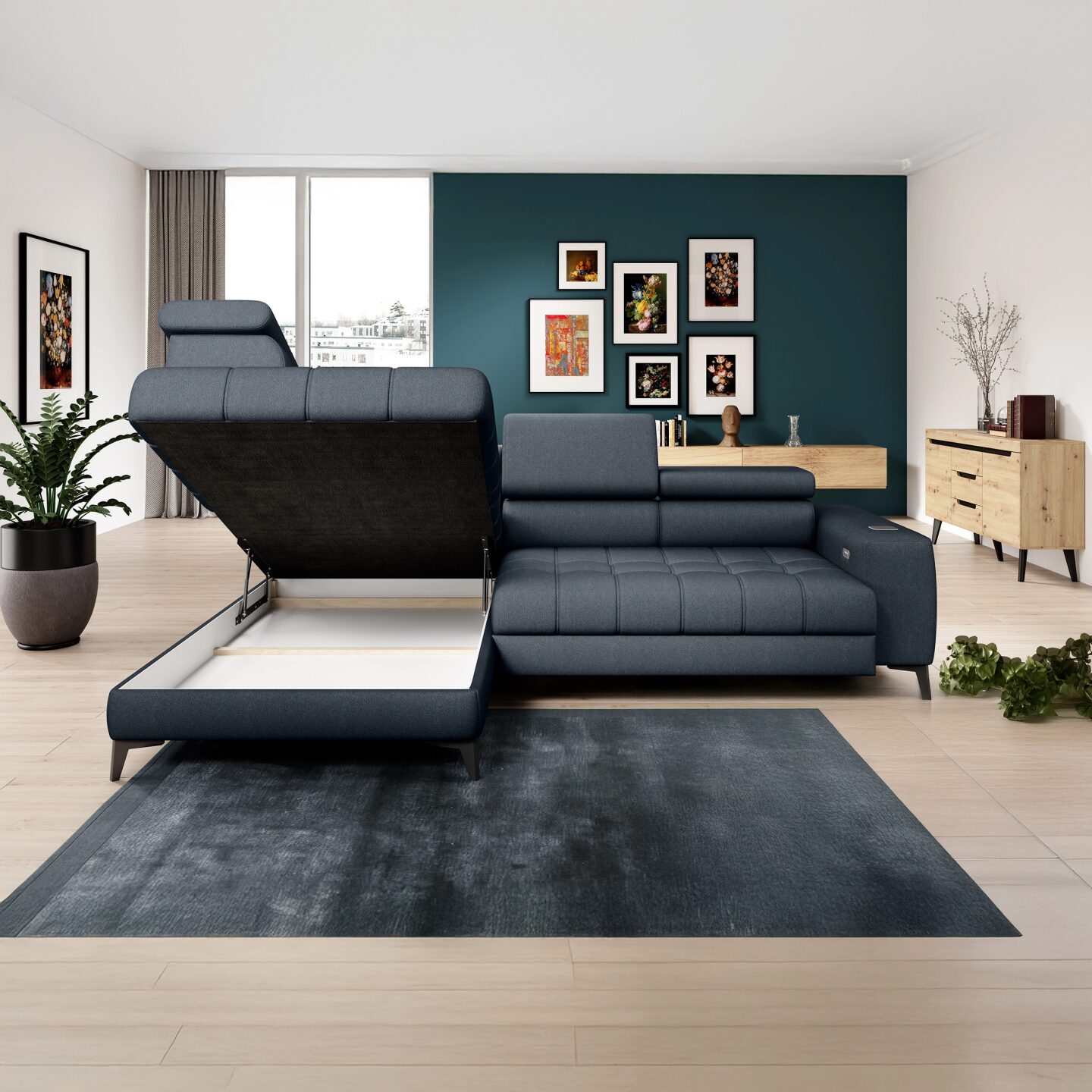 „Baggio“ kampinė sofa pasižymi elegancija moderniame variante – tobulu dizaino ir funkcionalumo deriniu. Įrengtos reguliuojamos galvos atramos, elektra valdoma sėdynė ir patalynės skyrius, ji užtikrina komfortą kasdieniam naudojimui. Papildomai įsigyjamas telefono įkroviklis šoninėje panelėje daro ją itin praktišku pasirinkimu moderniam interjerui. Aukštos kokybės medžiagos ir tikslus meistriškumas garantuoja patvarumą ir komfortą ilgus metus.