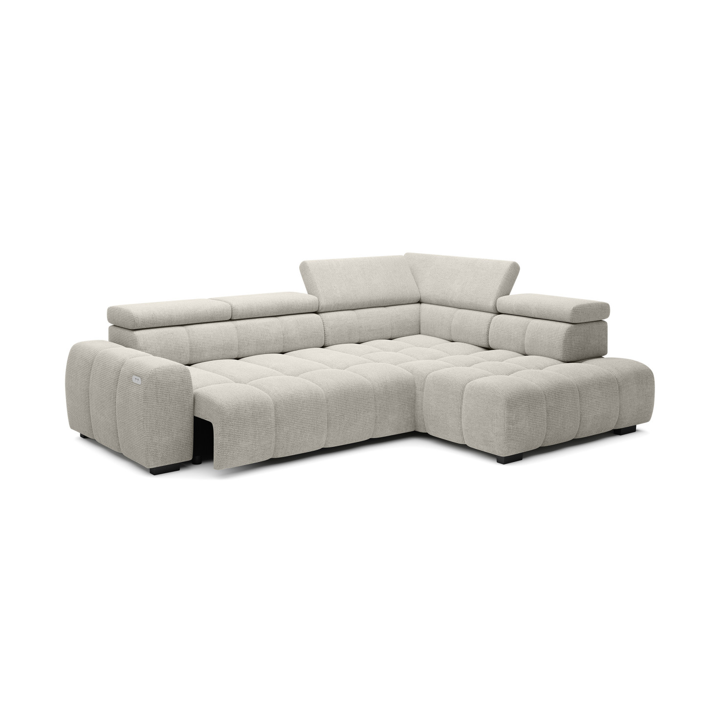 Kampinė sofa „Bull L“ – tai modernus ir funkcionalus svetainės baldas, išsiskiriantis masyvia, geometrine forma ir įspūdingu dygsniavimu visoje sėdynėje. Įrengtos reguliuojamos galvos atramos ir platūs porankiai, ji užtikrina maksimalų komfortą. Tvirta konstrukcija, vingiuotos spyruoklės ir aukštos kokybės putplastis garantuoja patvarumą ir komfortą ilgus metus. Puikiai tinka tiems, kurie vertina dizainą, komfortą ir erdvumą.