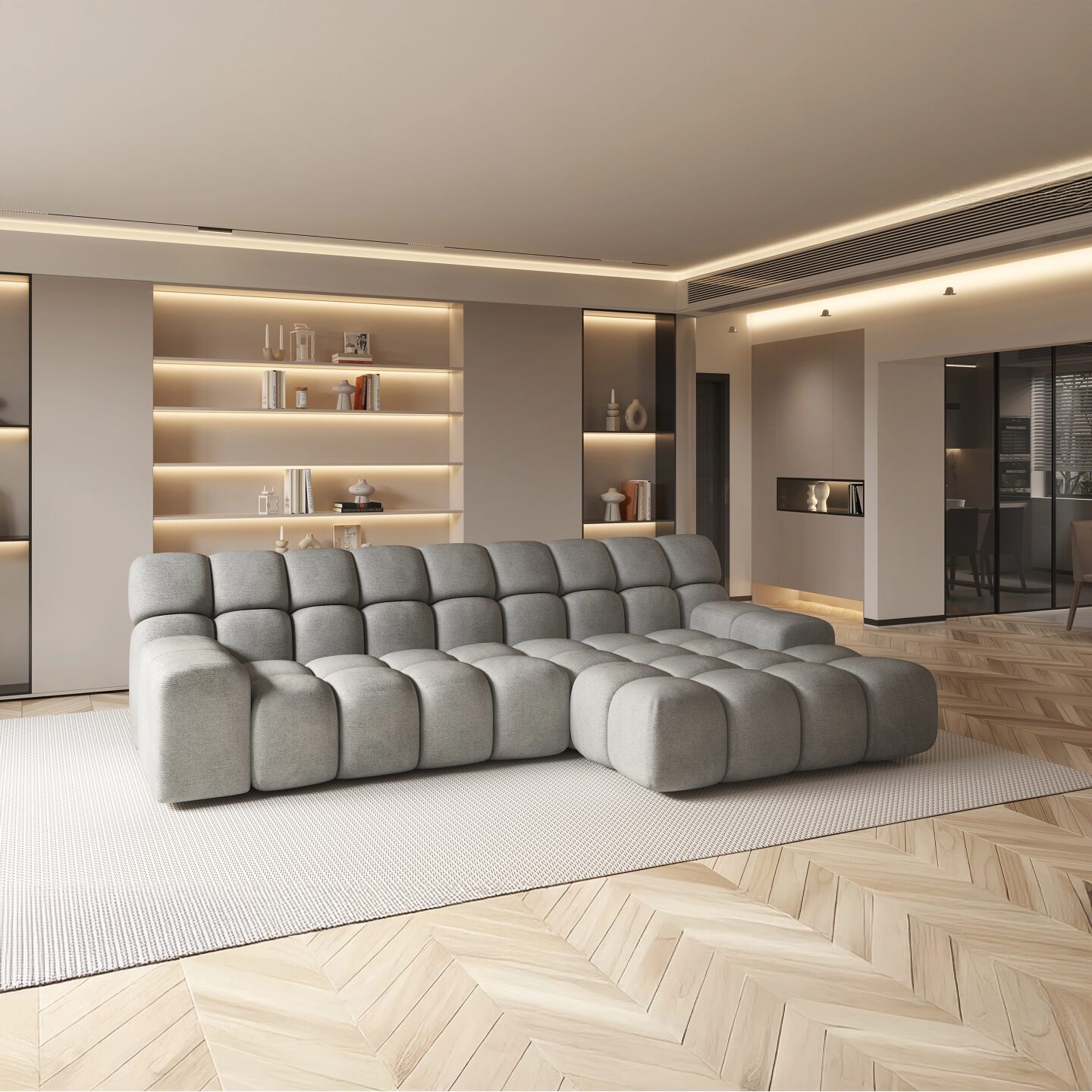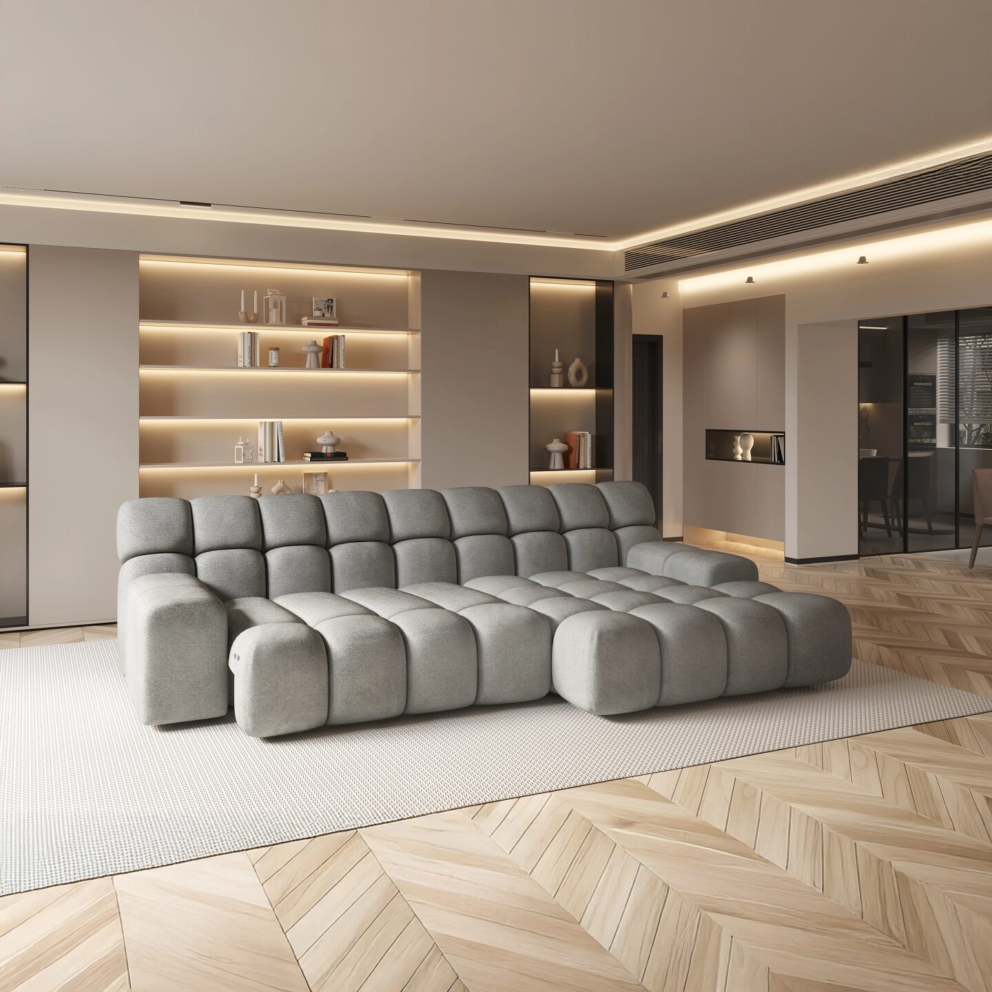 Kampinė sofa „Campile S“ sujungia prabangą, modernias technologijas ir maksimalų komfortą. Minkšta, segmentuota forma suteikia jaukumo ir stiliaus bet kokiam interjerui, o elektra ištraukiama sėdynė leidžia reguliuoti gylį iki 97 cm. Aukštos kokybės poliuretano putų paminkštinimas garantuoja komfortą ir ilgaamžiškumą, o apmuštas atlošas leidžia lanksčiai išdėstyti sofą bet kurioje svetainėje.