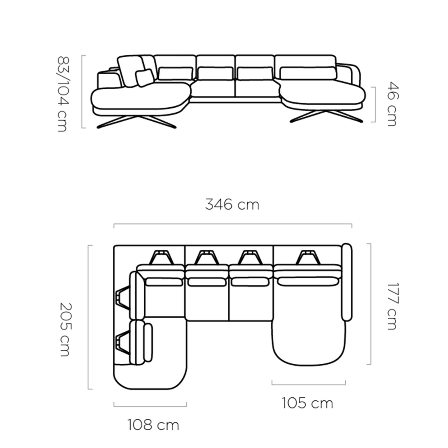 „Ilusio XL“ elektrinė kampinė sofa apjungia modernų dizainą, komfortą ir išmanius sprendimus. Dėl elektrinio sėdynės gylio reguliavimo (0–17 cm) ir atsipalaidavimo funkcijos su reguliuojamomis galvos atramomis bei atlošais, ji siūlo visiškai pritaikomą atsipalaidavimo patirtį. Banguotos spyruoklės ir didelio elastingumo HR putplastis garantuoja ilgalaikį elastingumą ir komfortą, o slankiojančios atlošo ir juosmens pagalvėlės prisitaiko prie natūralių kūno linkių. Metalinės kojelės (17 cm) ir apmuštas atlošas užbaigia dizainą, suteikdamos „Ilusio XL“ elegantišką išvaizdą iš bet kurio kampo – idealiai tinka moderniam, erdviam interjerui.