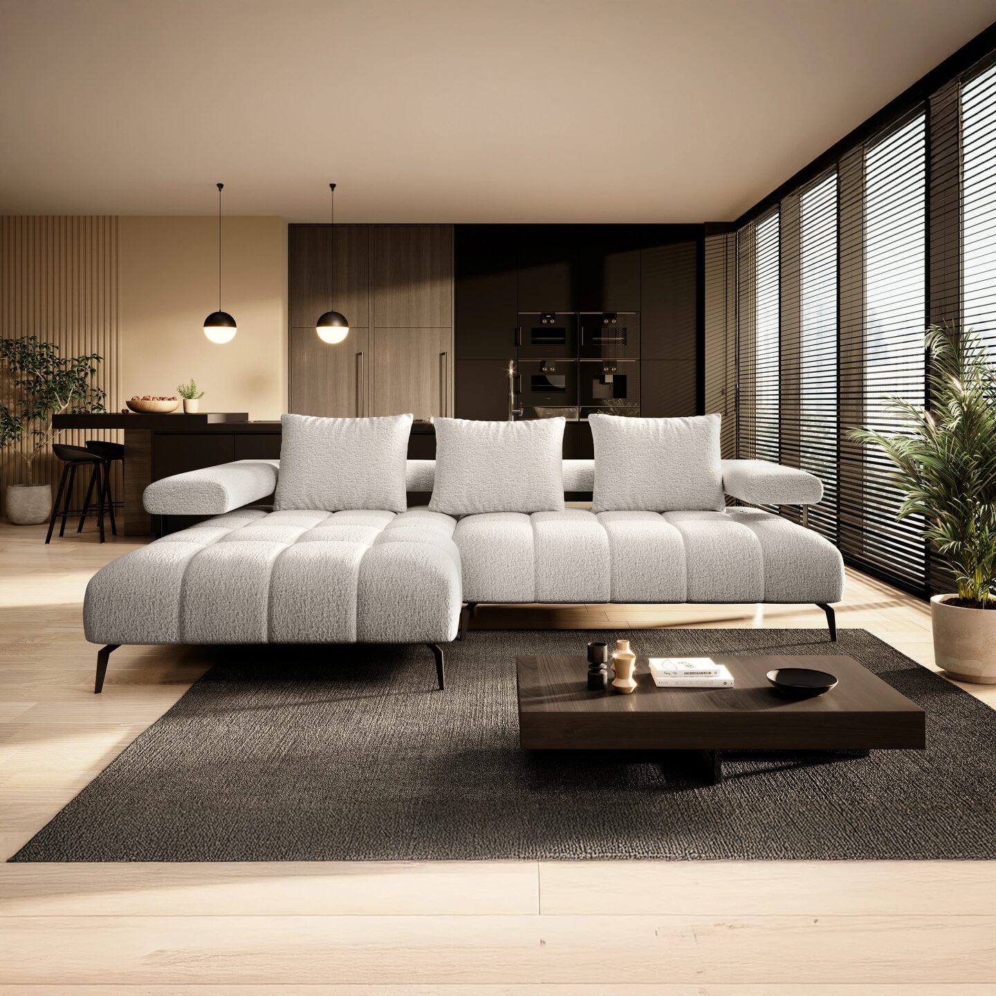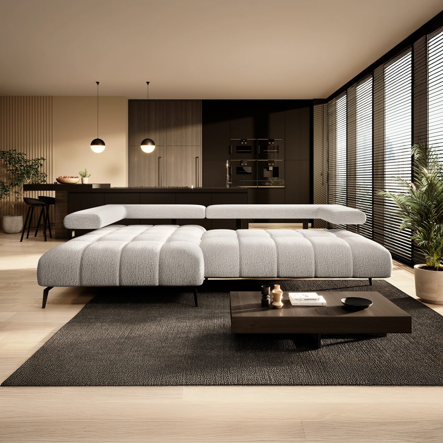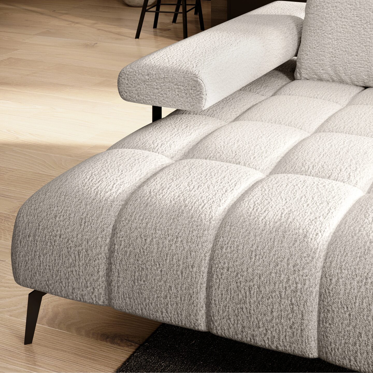 Kampinė sofa „Magnetic Mini“ – tai modernus, kompaktiškas baldas, kuriame dera stilius, komfortas ir funkcionalumas. Dėl elektrinio sėdynės prailginimo galite lengvai reguliuoti sėdynės gylį pagal savo poreikius, o aukštos metalinės kojelės (17 cm) ir apmuštas atlošas suteikia jai elegantišką išvaizdą iš bet kokio kampo. Didelio elastingumo putplasčio ir vingiuotų spyruoklių naudojimas garantuoja ilgalaikį komfortą, o užtrauktukais užsegamos pagalvėlės leidžia lengvai prižiūrėti ir valyti.