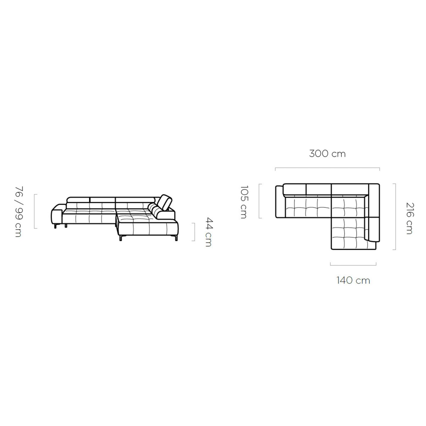 PLAZA L kampinė sofa – tai elegantiškas, modernaus charakterio baldas, sukurtas atsižvelgiant į komfortą ir funkcionalumą. Ji turi elektra valdomą sėdynę, slankiojančią atlošą ir reguliuojamas galvos atramas (5 dalys), kurios leidžia puikiai pritaikyti sėdėjimo padėtį pagal individualius poreikius. Pušies medienos ir MDF konstrukcija, A formos spyruoklės ir N30 putplastis užtikrina patvarumą ir komfortą, o 15 cm metalinės kojelės suteikia lengvumo ir elegancijos.