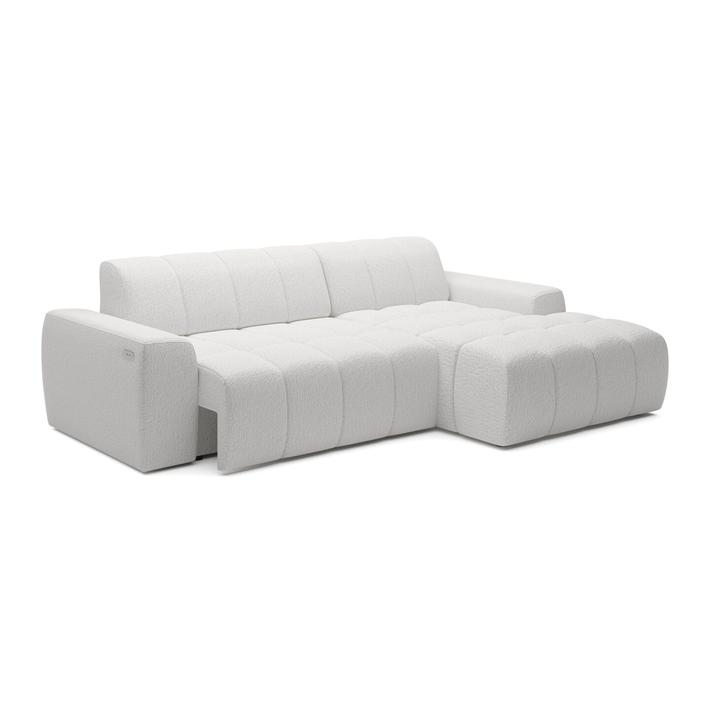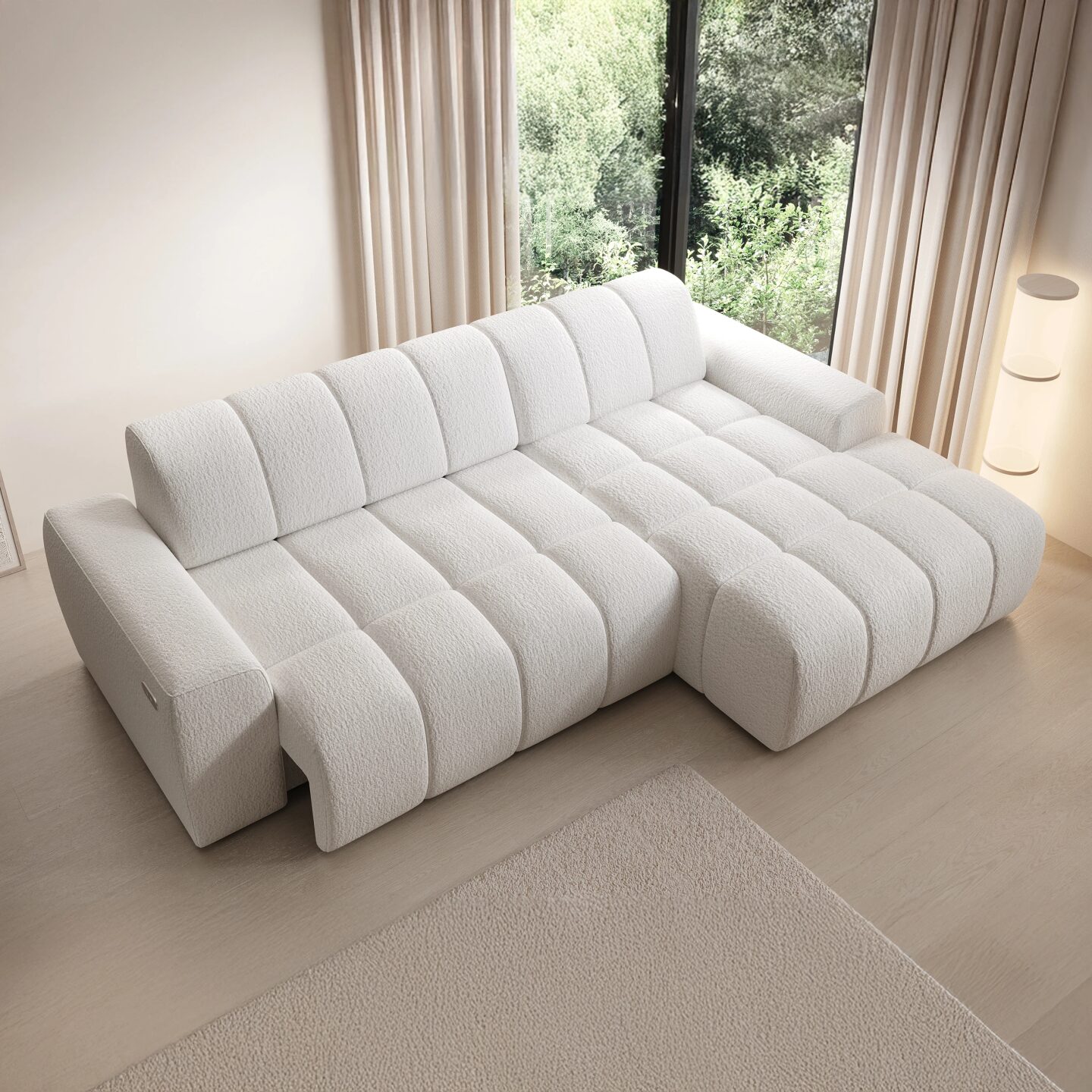 „Fabio S“ kampinė sofa – tai modernus, aukščiausios klasės modelis, kuriame dera elegantiškas minimalizmas ir aukščiausias kasdienio naudojimo komfortas. Unikali jos savybė – elektra ištraukiama sėdynė (0–27 cm), leidžianti tiksliai reguliuoti gylį ir pritaikyti kampinę sofą individualiems poreikiams. Dėl visiškai apmušto atlošo „Fabio S“ yra laisvai stovintis baldas, idealiai tinkantis pastatyti svetainės centre. Kruopščiai sukurta forma, minkšti užpildai ir subtilios siūlės sukuria elegantišką kompoziciją, kuri puikiai tiks tiek moderniame, tiek klasikiniame interjere. Ši kampinė sofa pasižymi ne tik akį traukiančia išvaizda, bet ir išskirtiniu komfortu bei ilgaamžiškumu.