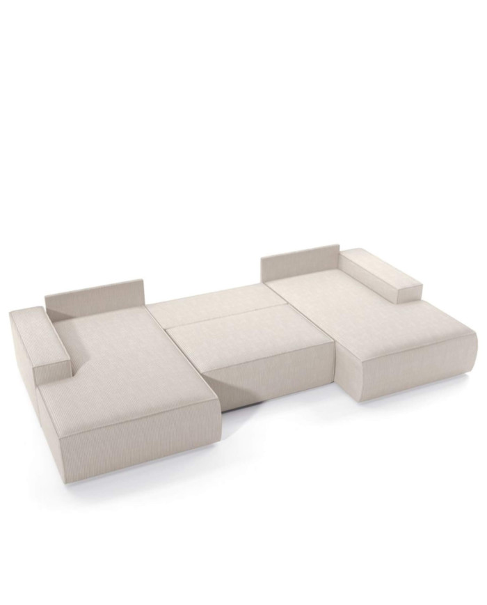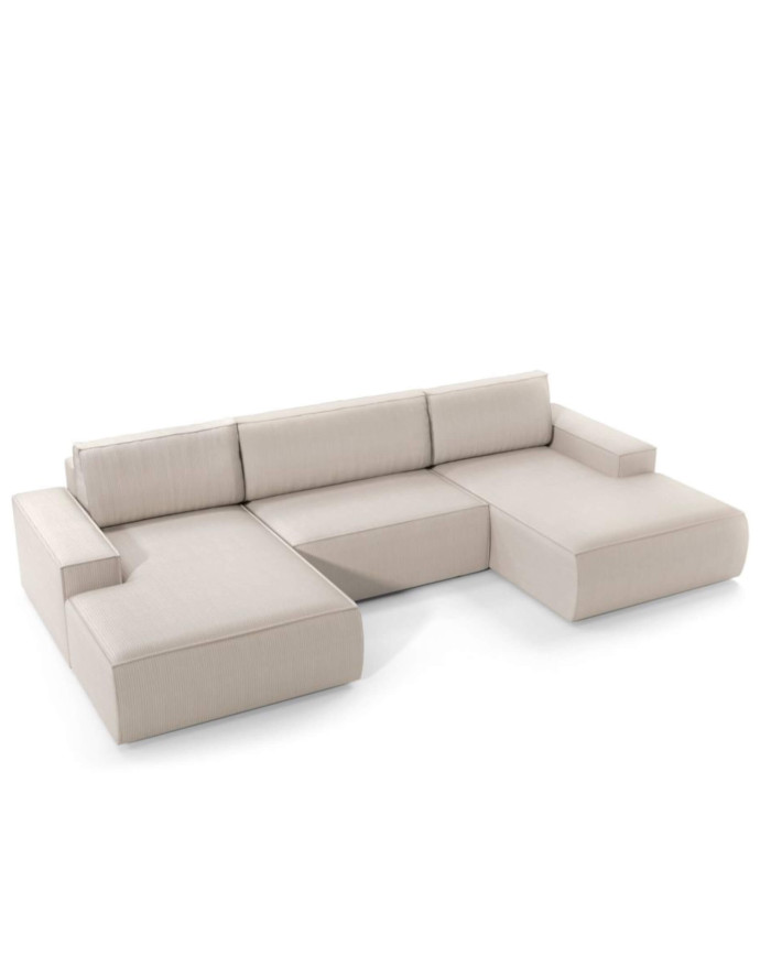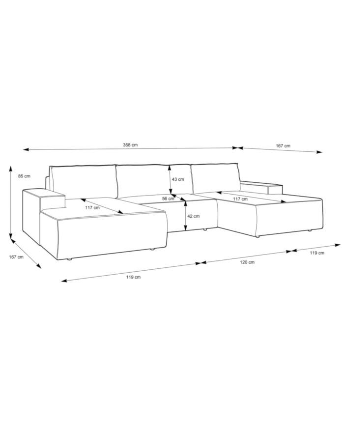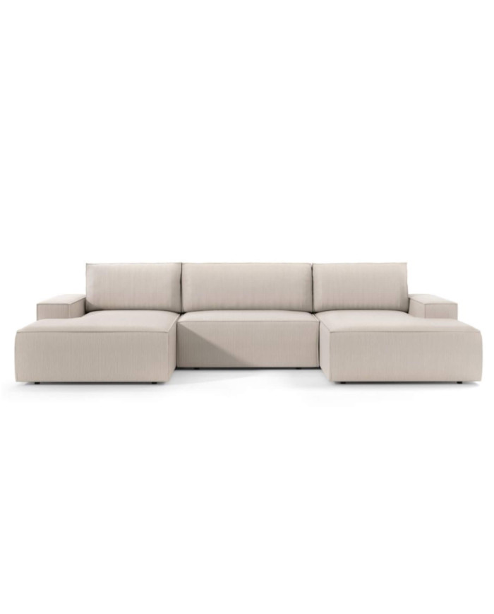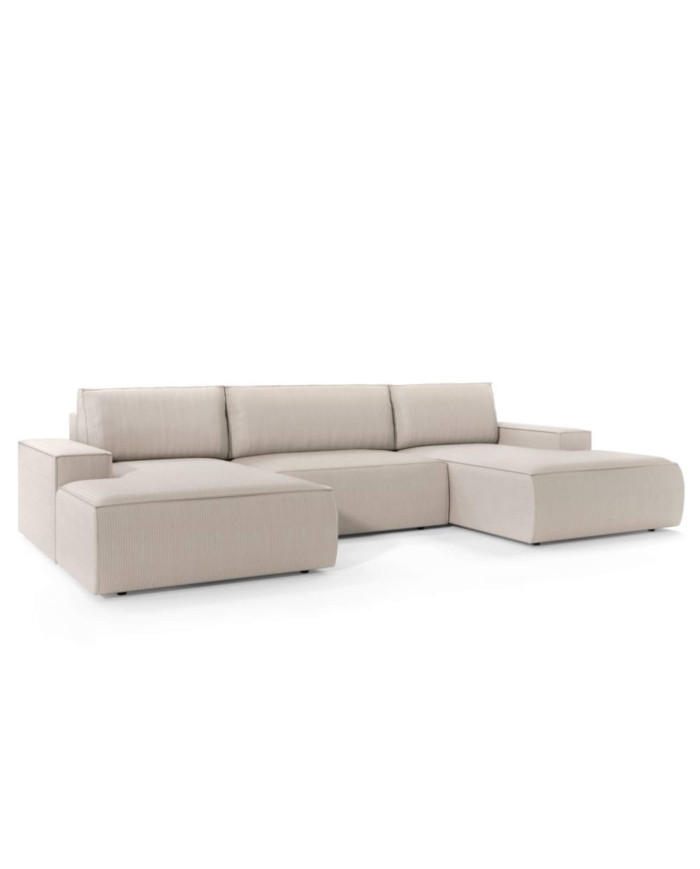 Moderni kampinė sofa „Fiord U1“ pasižymi išskirtine U forma. Išskirtinį baldo stilių pabrėžia dekoratyviniai apvadai, įrėminantys komplekto kraštus. Jis puikiai derės prie modernaus interjero ir taps išskirtiniu akcentu. Komplekte yra erdvi patalynės dėžė, o dėl miegojimo funkcijos „DL“ jis greitai ir lengvai transformuojasi iš patogios sofos į erdvią miegojimo vietą. Sofa išsiskleidžia spyruoklinių mechanizmų pagalba. Kampinę sofą reikia minimaliai surinkti. Komplektą galima įsigyti su plačiu audinių pasirinkimu, kurį galite rasti „Product Creator“ svetainėje.
