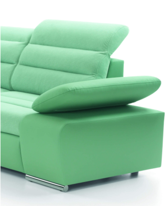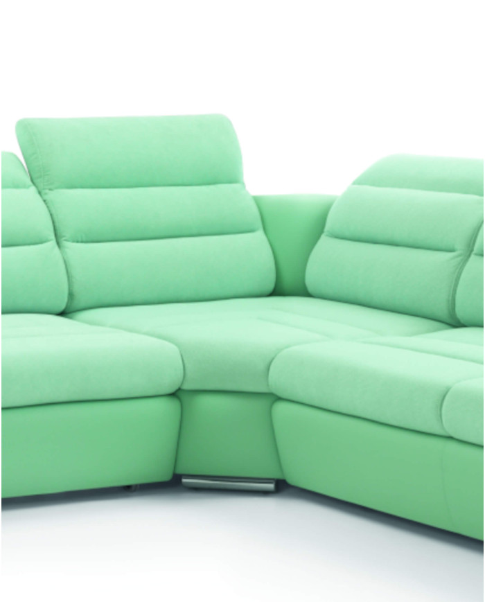 Korfu 3 kampinė sofa, miegojimo funkcija, konteineris, reguliuojamos galvos atramos ir porankiai Gr1