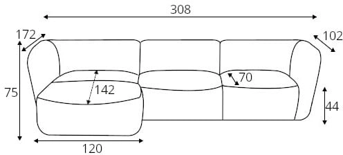 Kairysis kampinis sofa Candelo Mini 70 Gr1