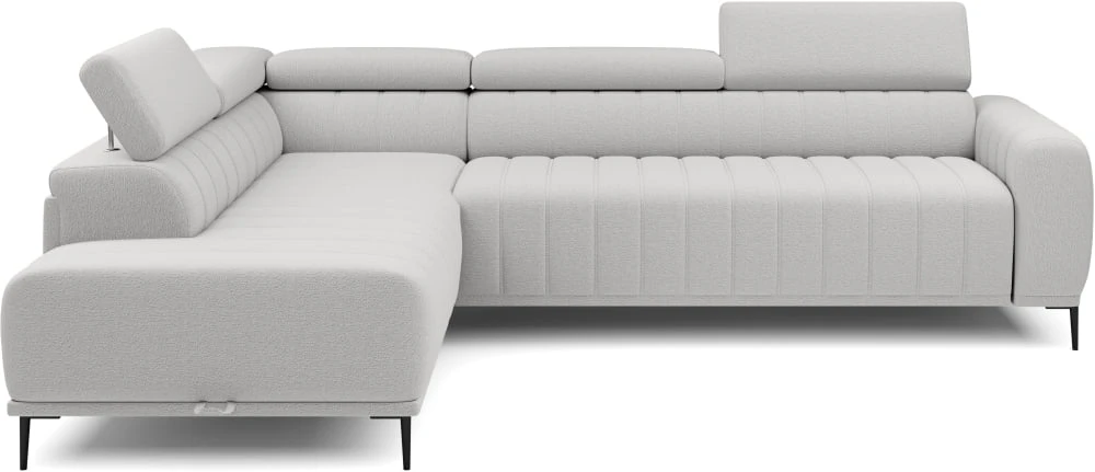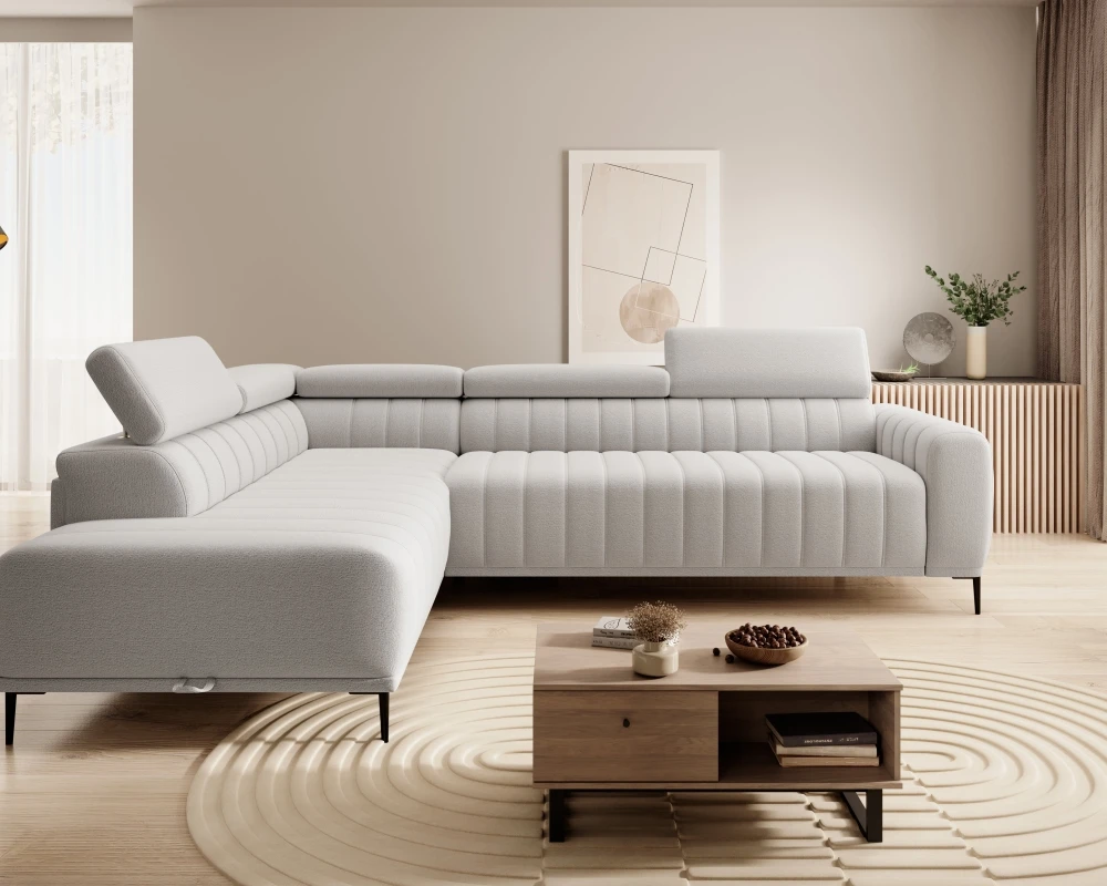 Kairysis kampinis sofa Gandi L Corner 120 su miegamąja funkcija, itališko tipo rėmu ir Gr1 konteineriu
