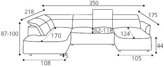 „Murillo XL“ kampinė sofa yra U formos kampinė sofa, kurios matmenys – 350 x 87 x 218 cm, ir kurią galima įsigyti kairės arba dešinės pusės versijų. XL modelis turi elektra reguliuojamą sėdynę, kurią išskleidus miegamoji erdvė yra 115 x 285 cm. Be to, modelis turi 6 reguliuojamas galvos atramas ir patalynės dėžę pufe, kurios matmenys – 204 x 90 x 17 cm. Sėdynės užpildas – A tipo banguotos spyruoklės, N30 poliuretano putos, elastingas diržas. Atlošo užpildas – 2315 poliuretano putos. 5 cm aukščio plastikinės kojelės. Taip pat galimi „Mini“ ir „XL“ modeliai.