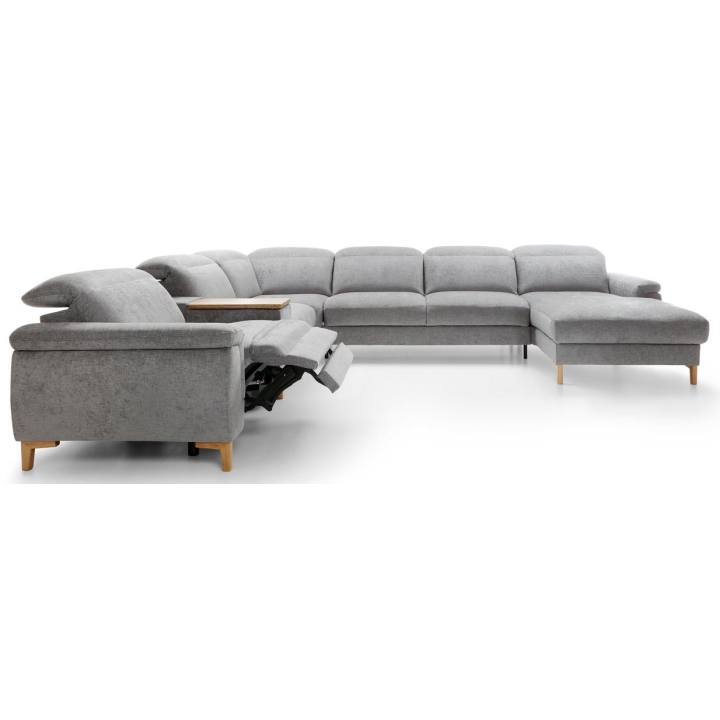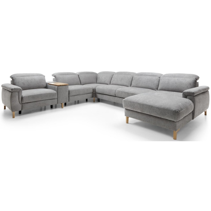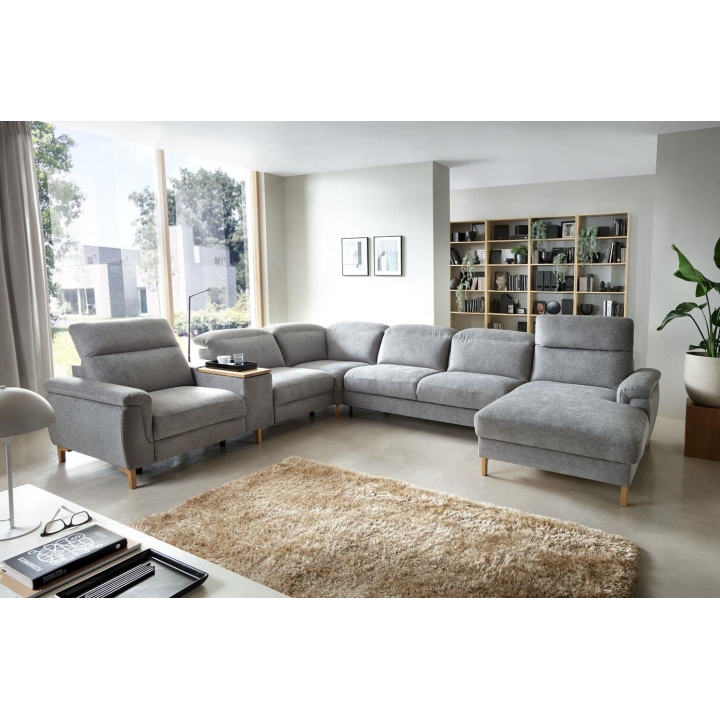 Reguliuojamos galvos atramos leidžia kiekvienam naudotojui pritaikyti galvos atramos aukštį pagal savo pageidavimus. Kampinė sofa sukurta taip, kad palaikytų taisyklingą laikyseną ir skatintų atsipalaidavimą po ilgos dienos. Kruopščiai parinktos apmušalų medžiagos padidina baldų patvarumą ir suteikia malonų pojūtį odai.